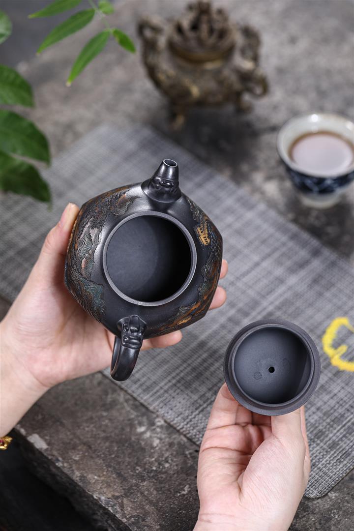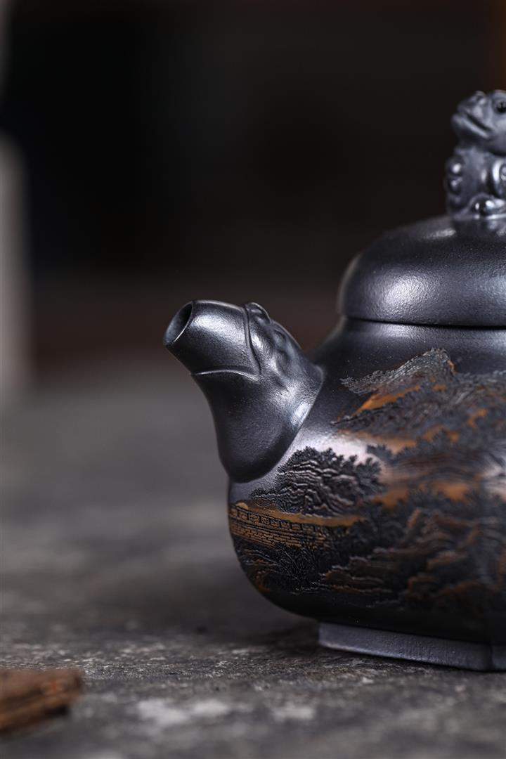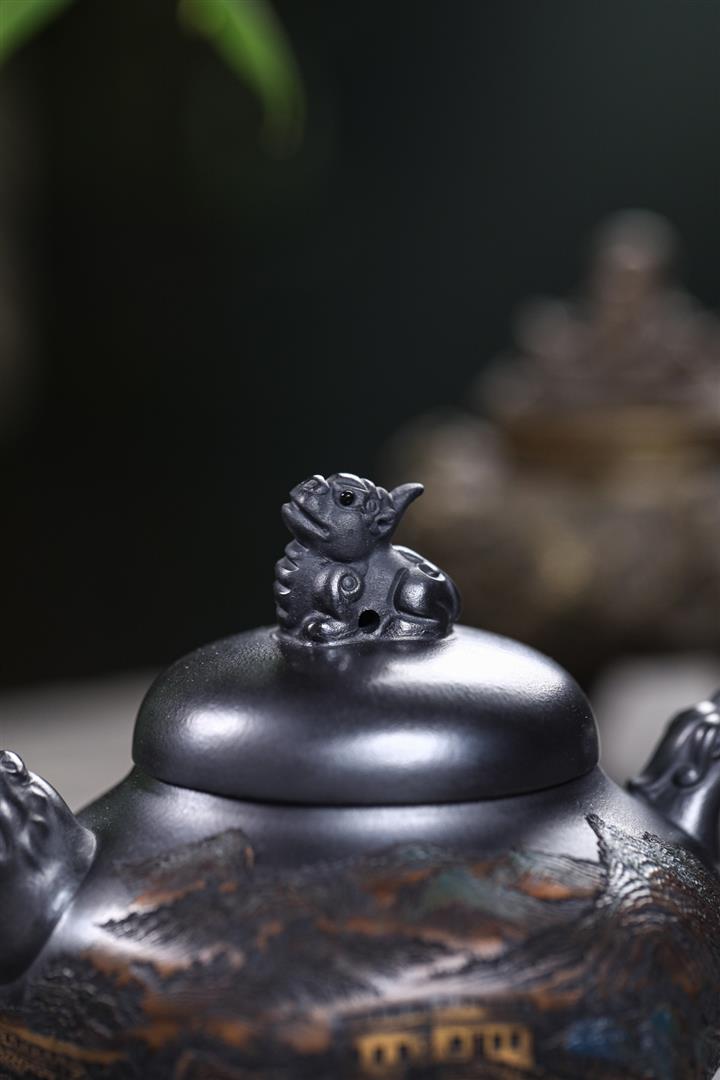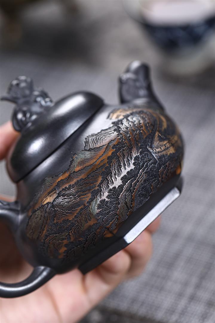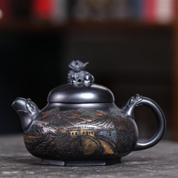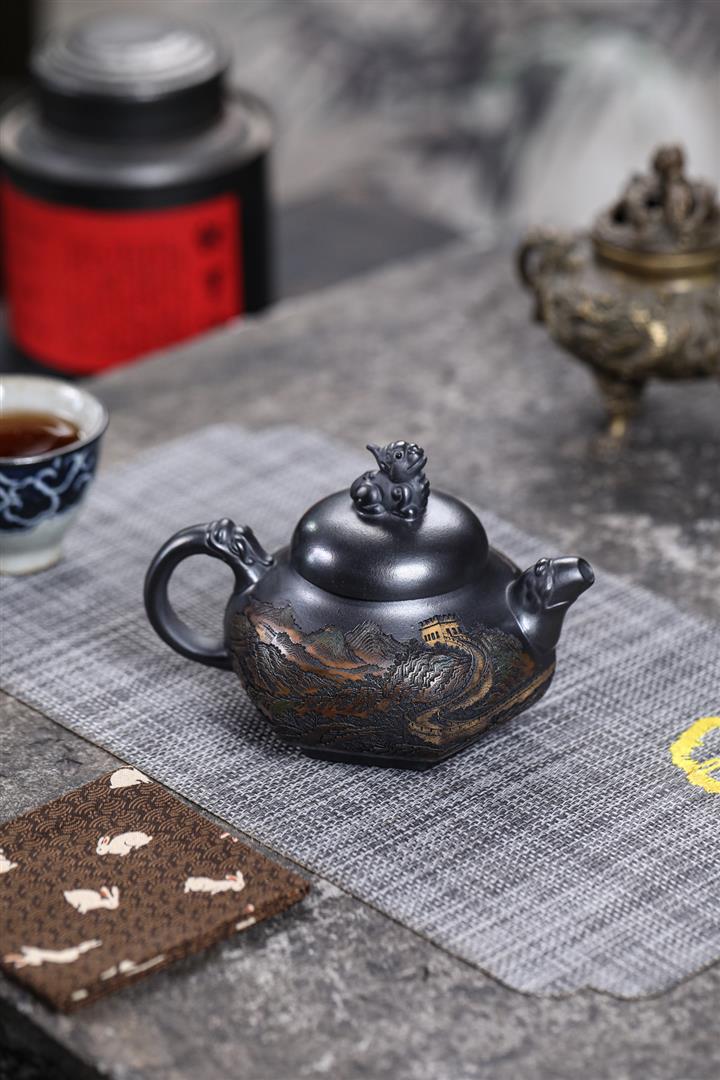 紫砂壺溪山映景茶壺全手工刻畫山水圖泡茶壺POT2108