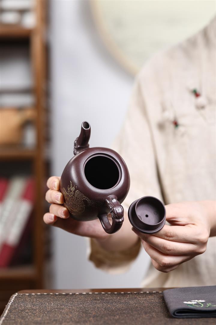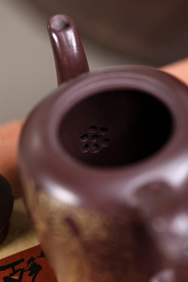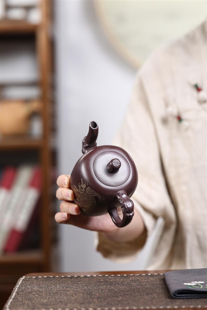 【作品介紹】此款壺形線條流暢,壺把,壺嘴,壺身壹氣呵成栩栩如生,是收藏把玩的好壺,泥料色澤古樸典雅,日久使用,漸露鋒芒,養成變化快,溫潤莊重,用其泡茶,使用的年代久,壺身就溫潤,泡出來的茶湯也就醇郁芳馨。
