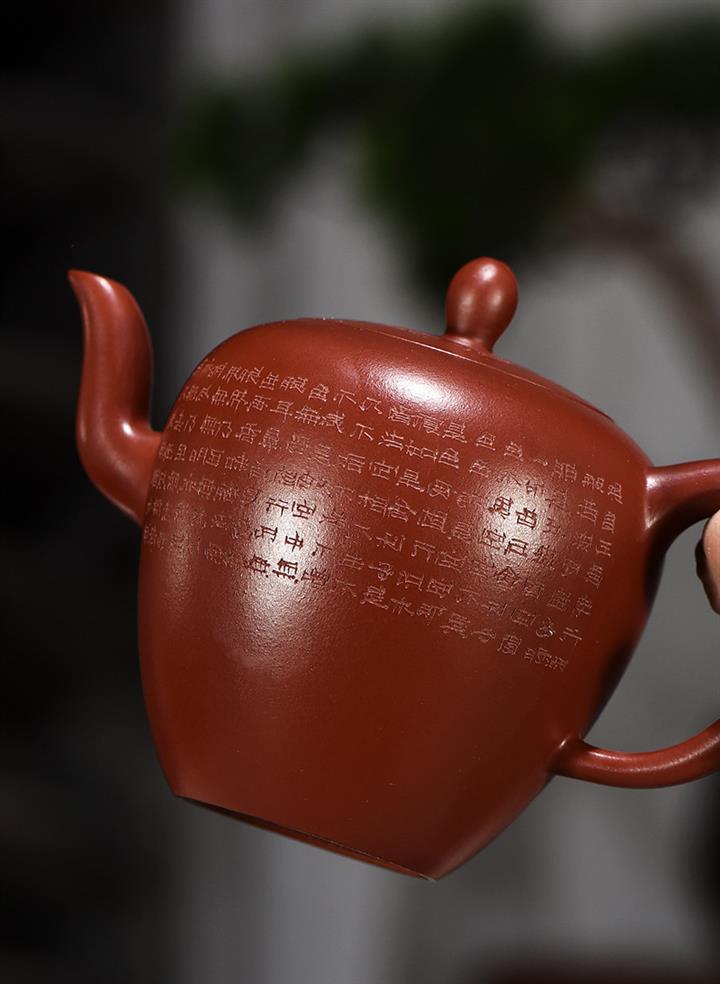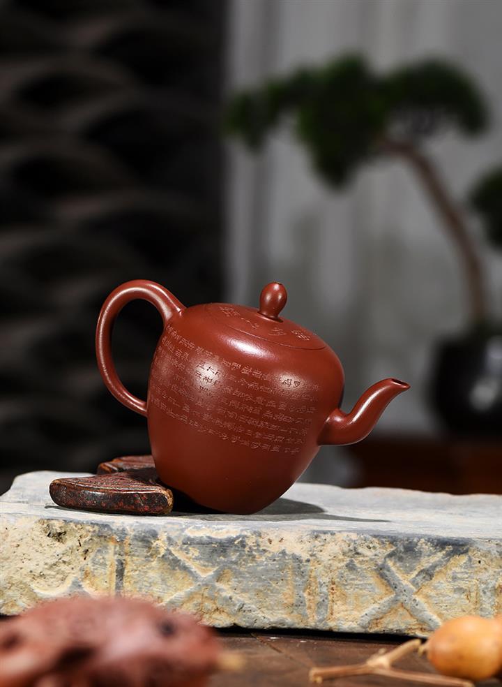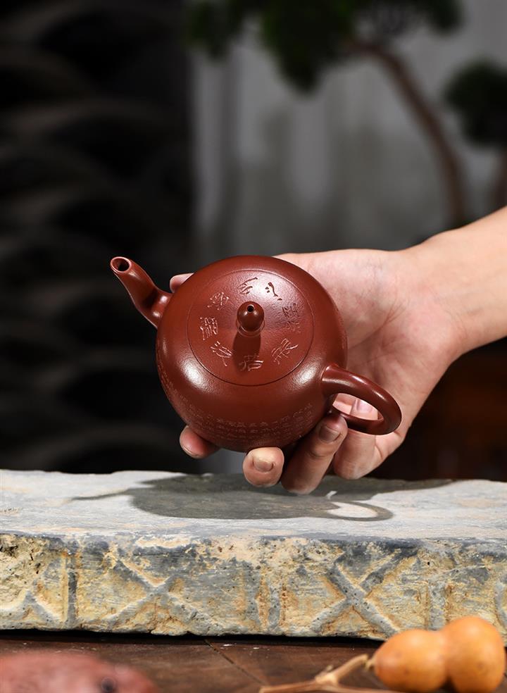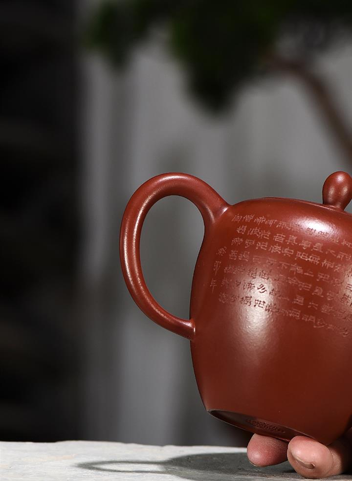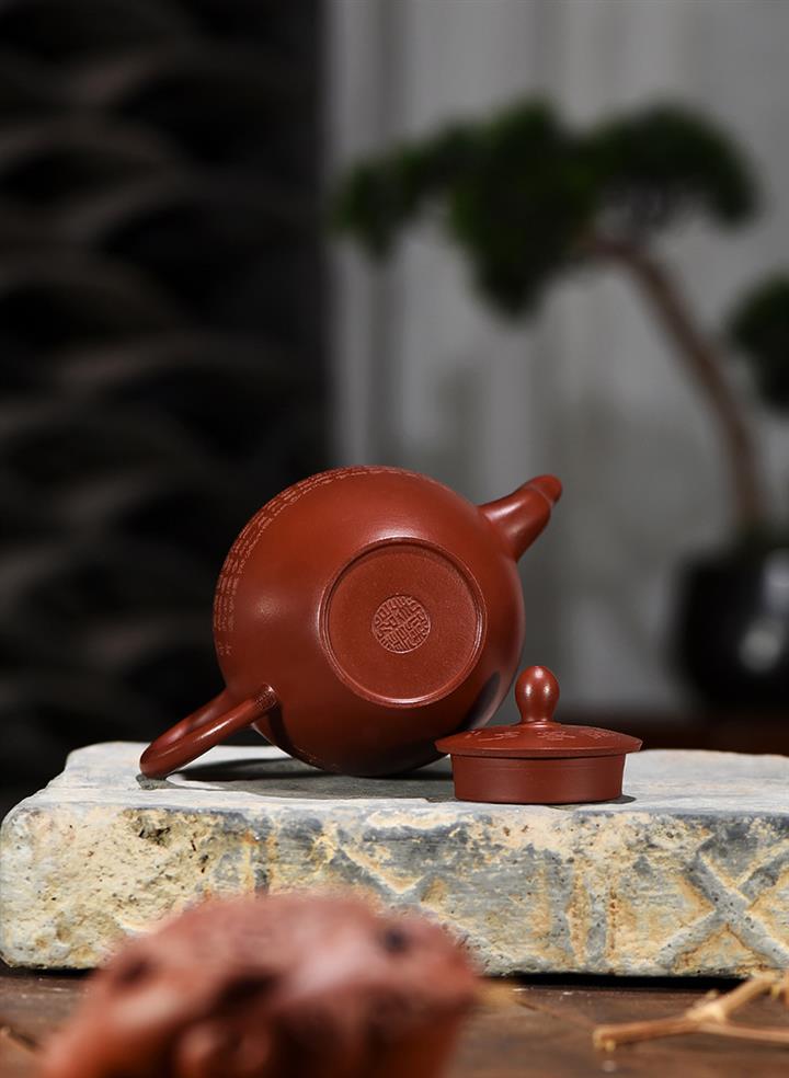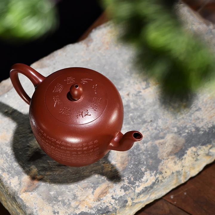 原礦龍血砂水平壺刻繪茶壺POT7440