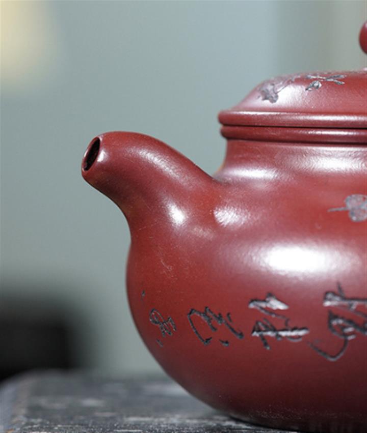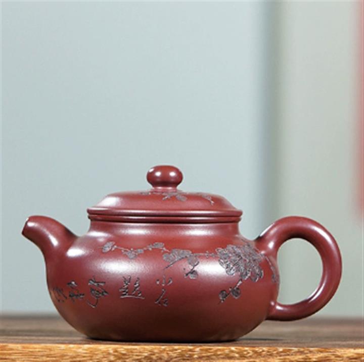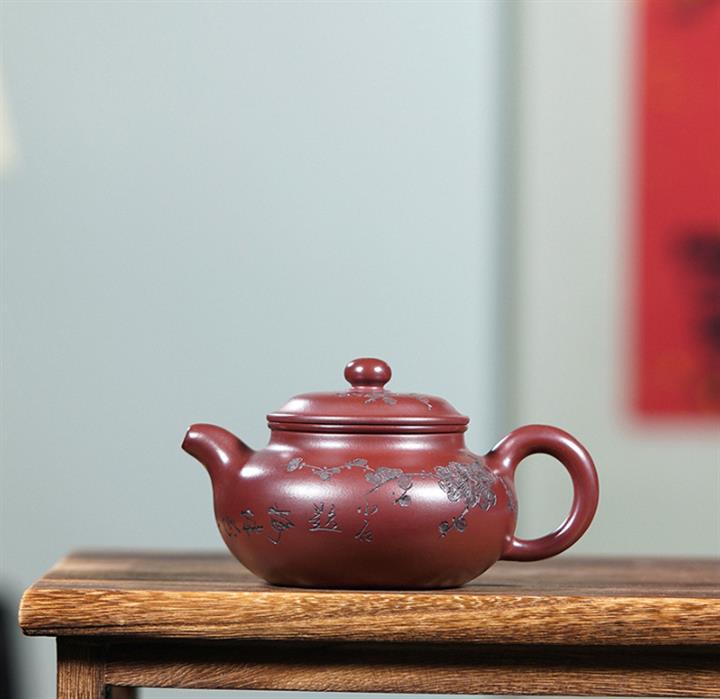 220cc原礦龍血砂刻梅花茶壺POT8902