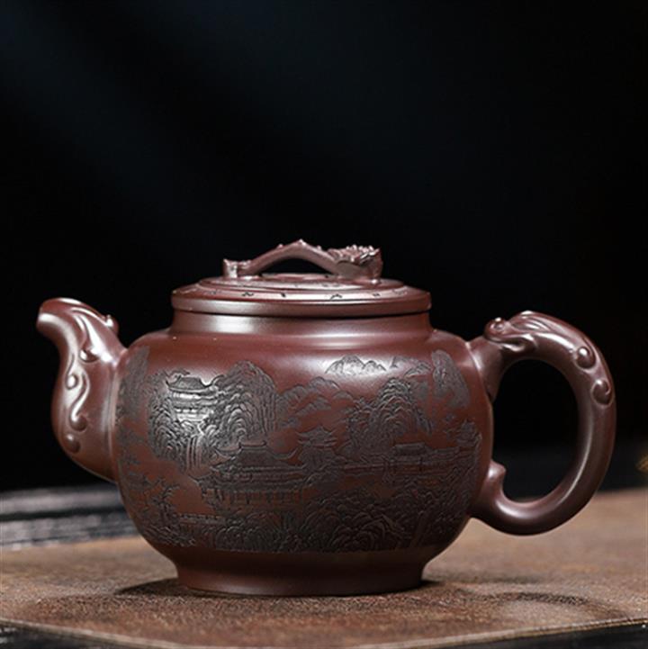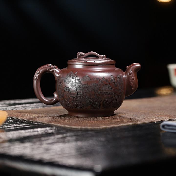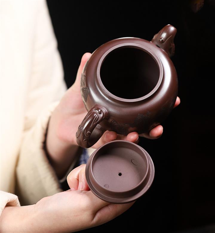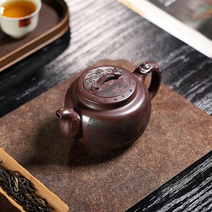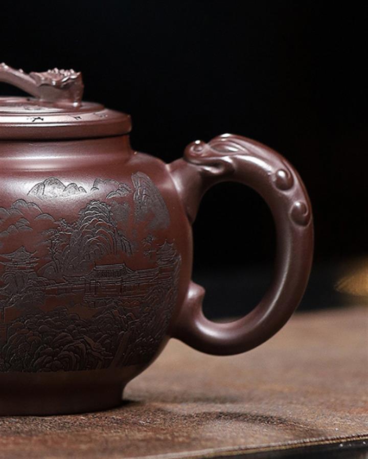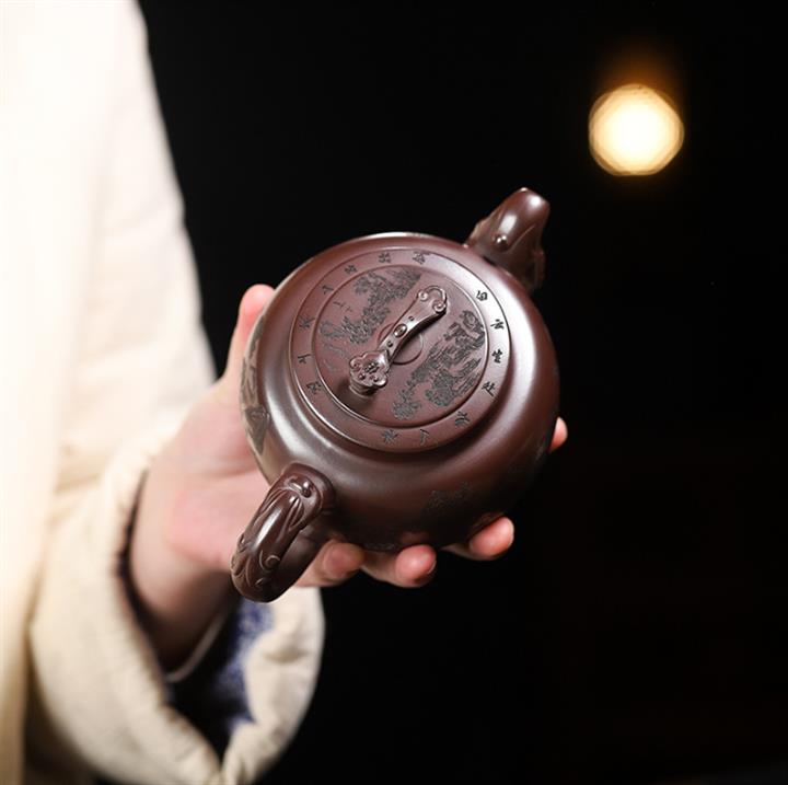 原礦紫龍血雲扭如意紫砂壺POT4964