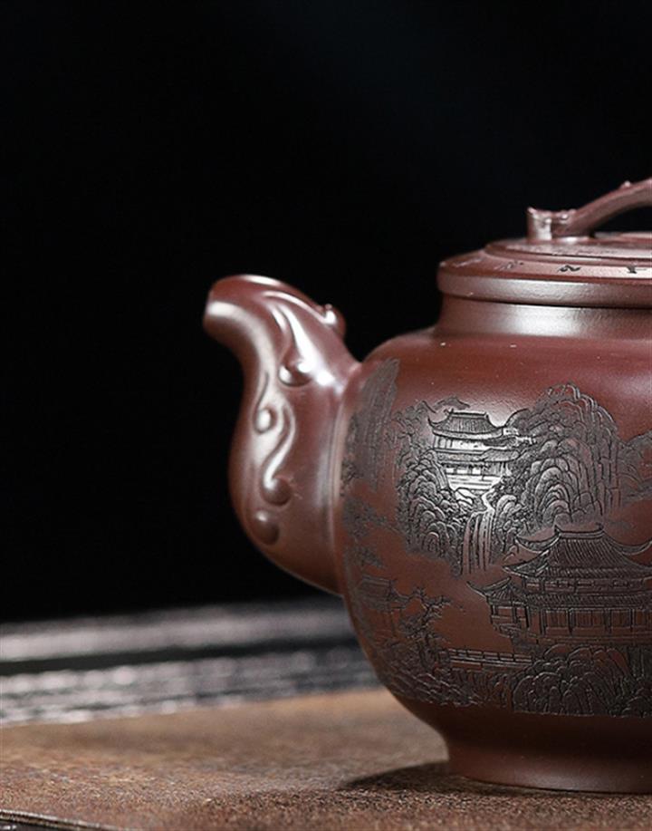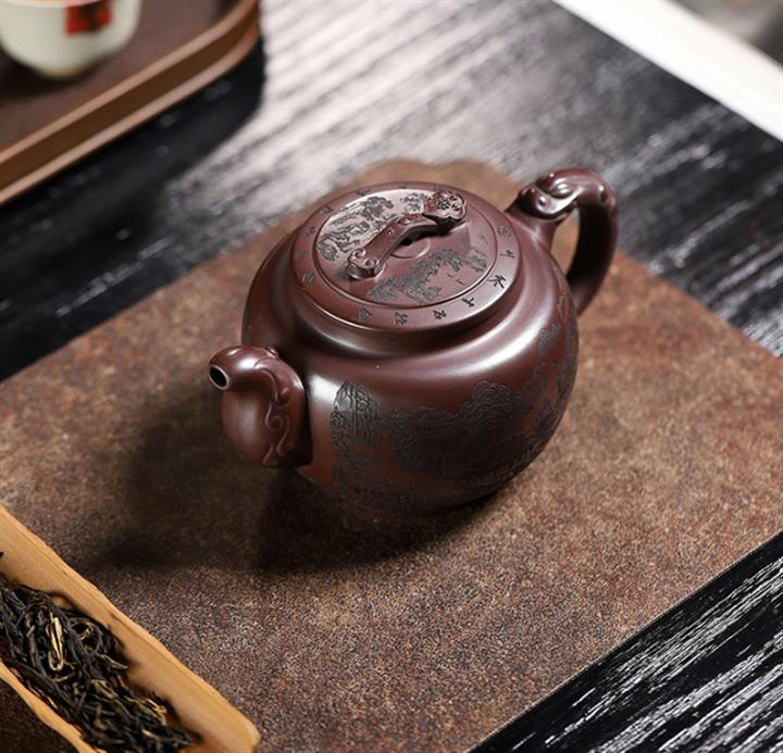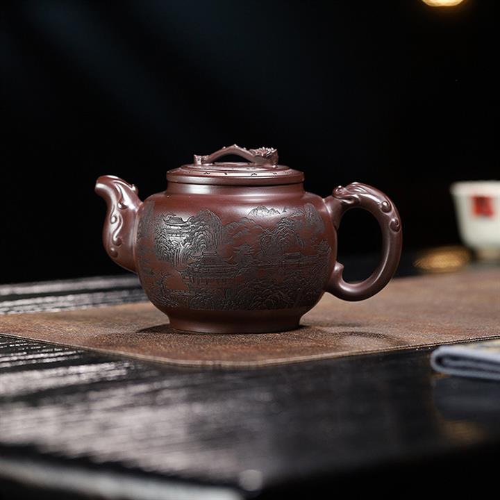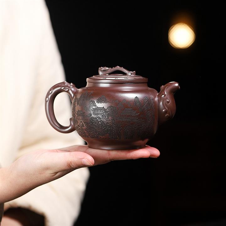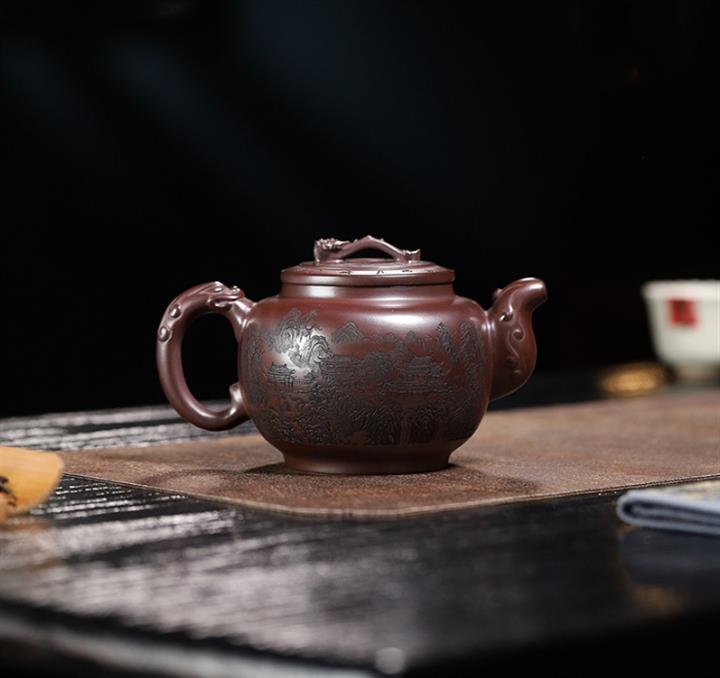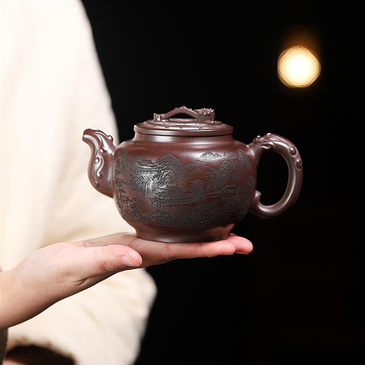 原礦紫龍血雲扭如意紫砂壺POT4964