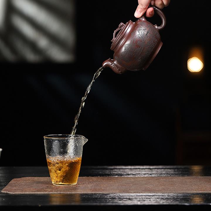【泥料特點】砂土氣重,似淳實農民,日久使用,漸露鋒芒,養成變化,溫潤莊重。紫砂是壹種雙重氣孔結構的多孔性材質,氣孔微細,密度高。用紫砂壺沏茶,不失原味,且香不渙散,得茶之真香真味。紫砂使用越久,壺身色澤越發光亮照人,氣韻溫雅。紫砂壺長久使用器身會因撫摸擦拭,變得越發溫潤光澤。