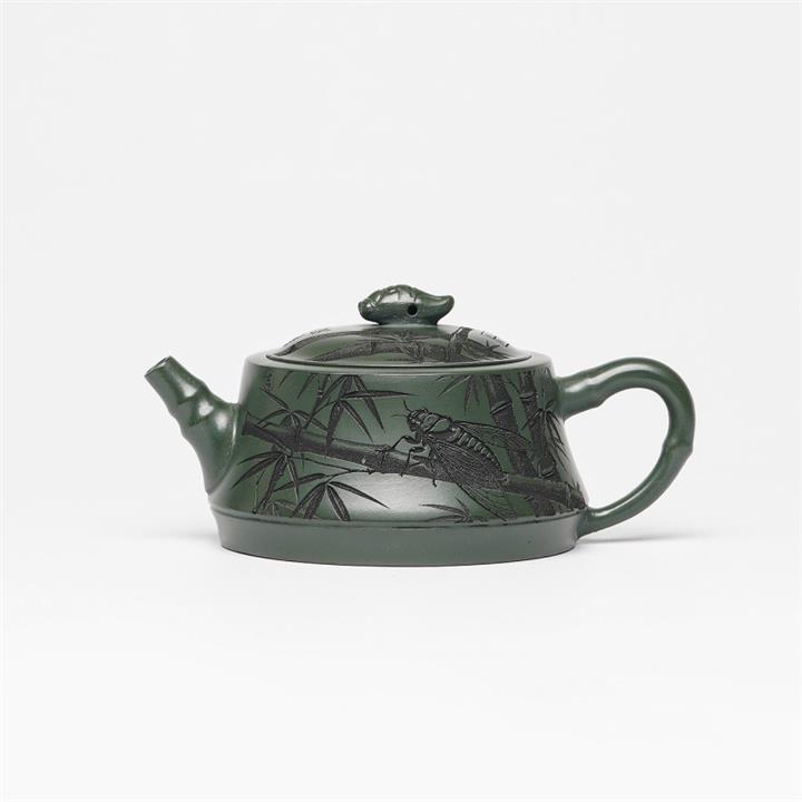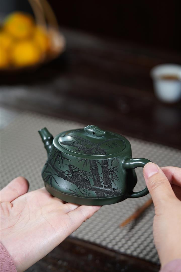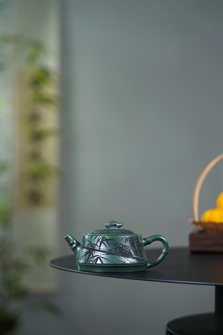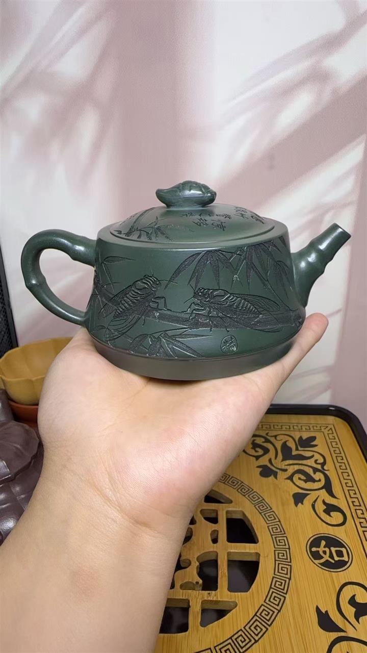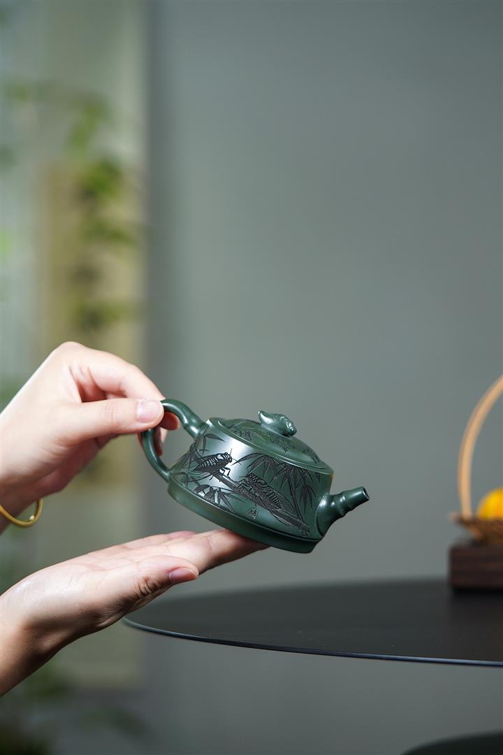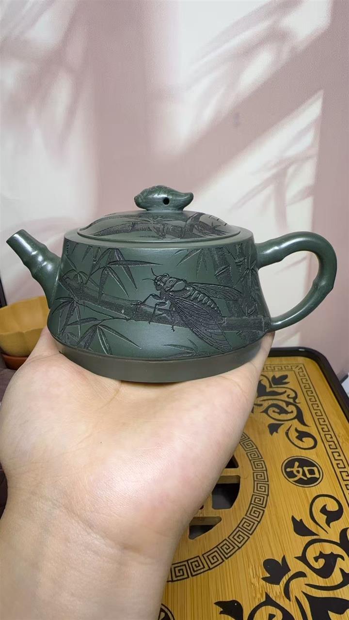 180cc原礦綠泥竹節蟲茶壺POT8935