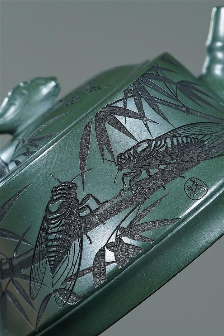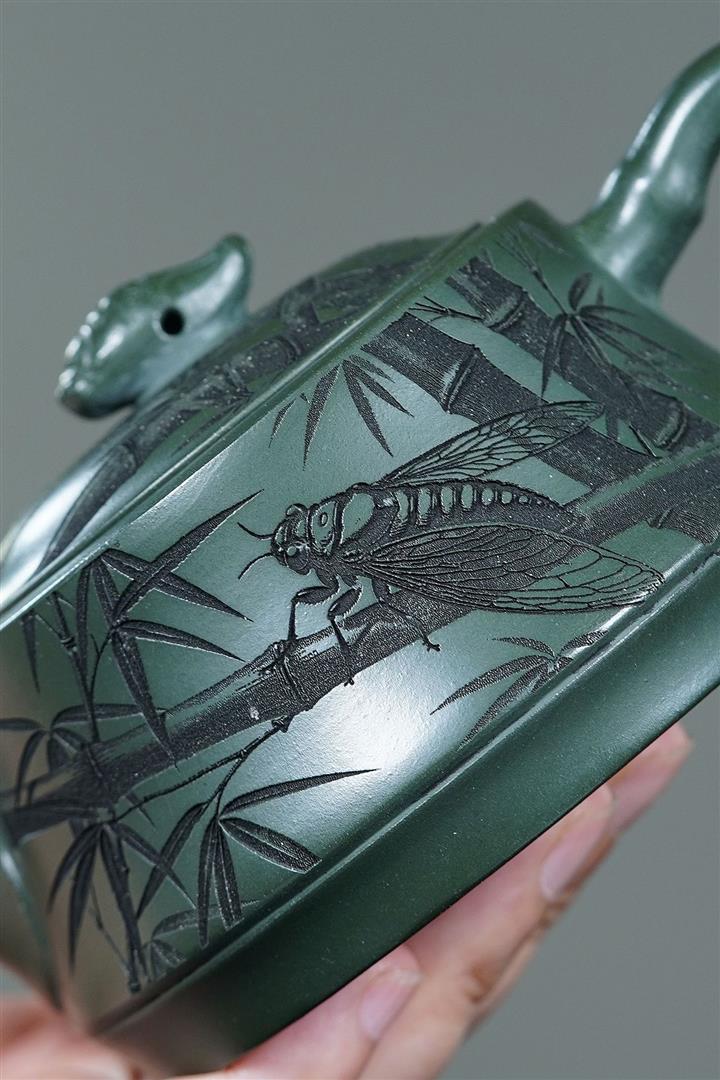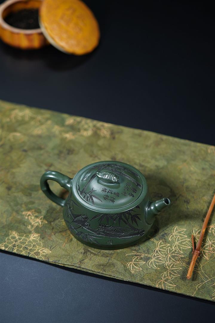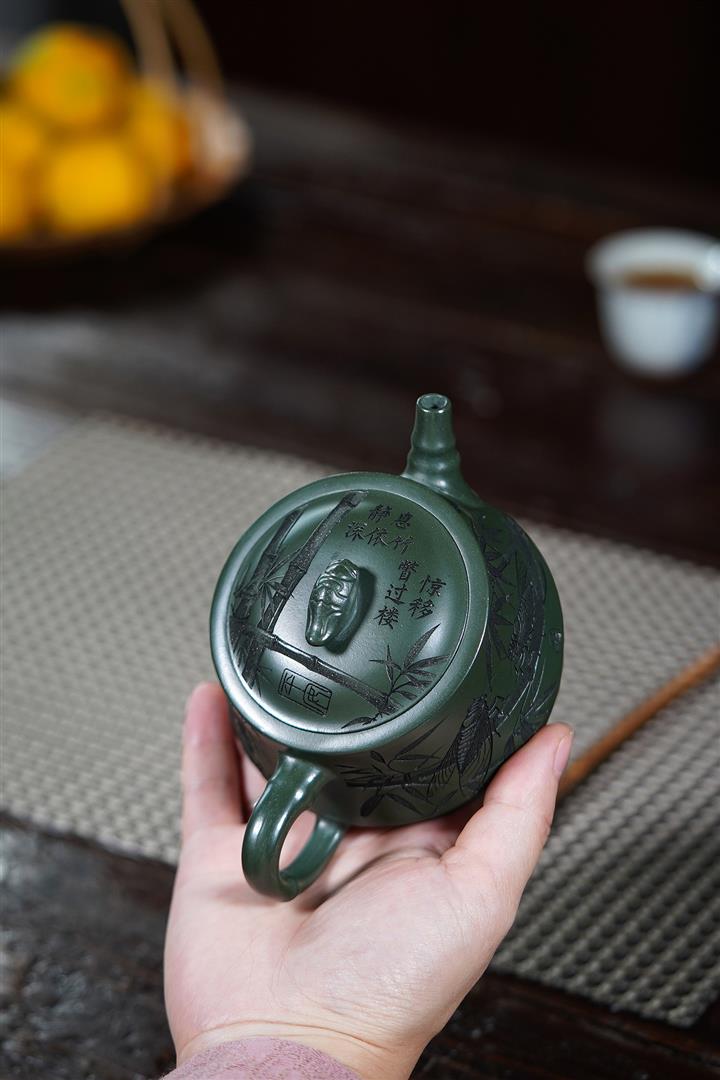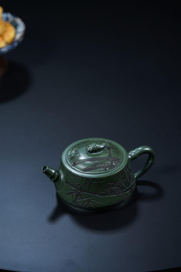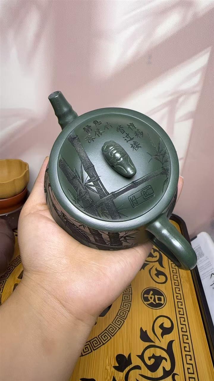 180cc原礦綠泥竹節蟲茶壺POT8935