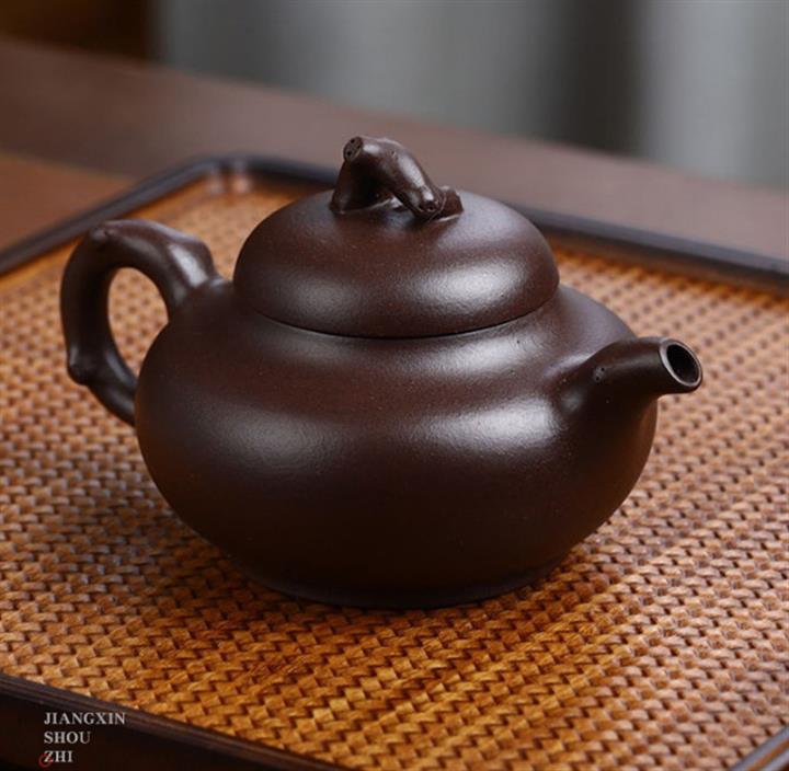 【作品介紹】此款壺形線條流暢,壺把,壺嘴,壺身壹氣呵成栩栩如生,是收藏把玩的好壺,泥料色澤古樸典雅,日久使用,漸露鋒芒,養成變化快,溫潤莊重,用其泡茶,使用的年代久,壺身就溫潤,泡出來的茶湯也就醇郁芳馨。