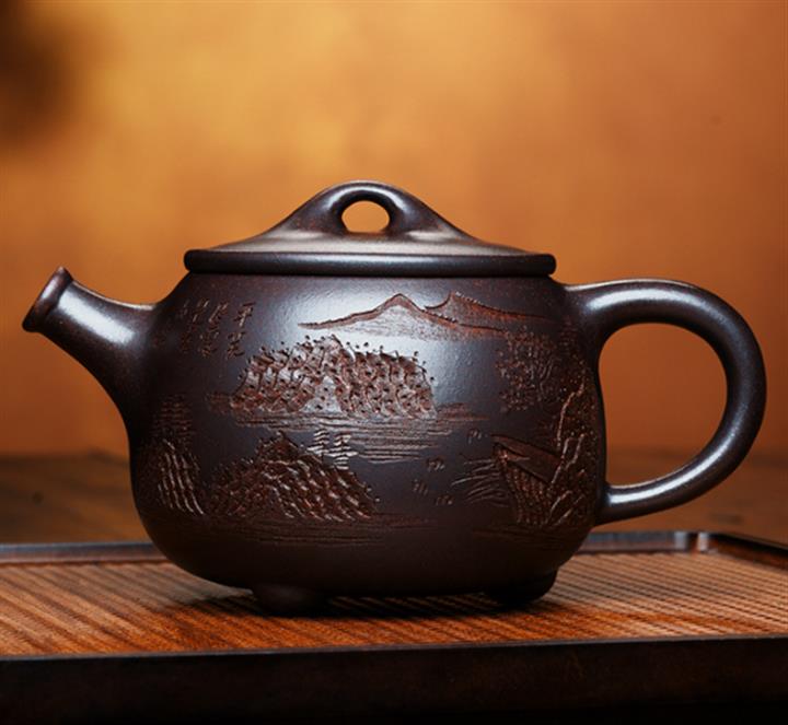 【作品介紹】此款壺形線條流暢,壺把,壺嘴,壺身壹氣呵成栩栩如生,是收藏把玩的好壺,泥料色澤古樸典雅,日久使用,漸露鋒芒,養成變化快,溫潤莊重,用其泡茶,使用的年代久,壺身就溫潤,泡出來的茶湯也就醇郁芳馨。