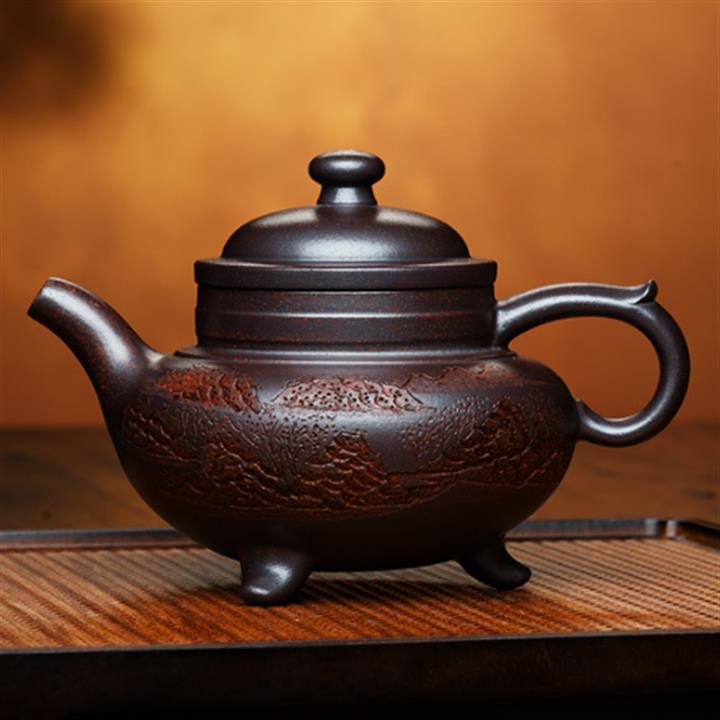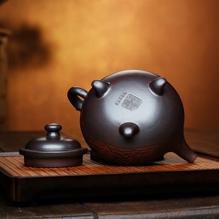 精家藏龍血砂金紋如意紫砂壺POT5737