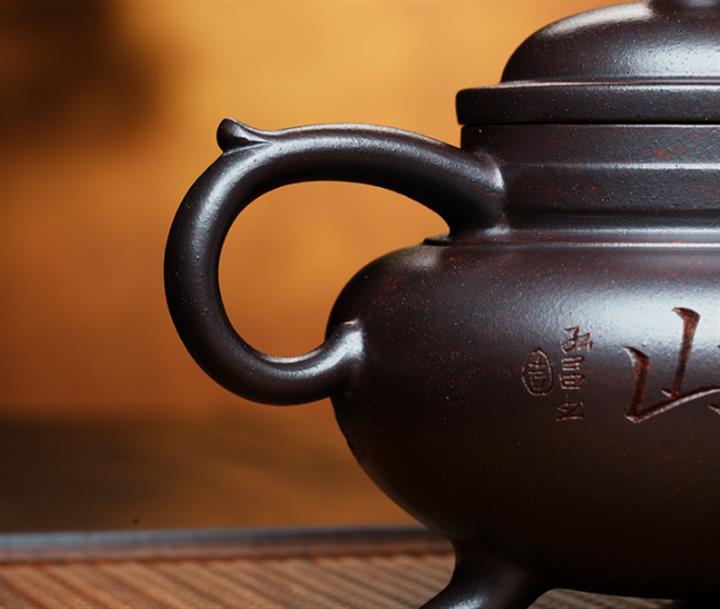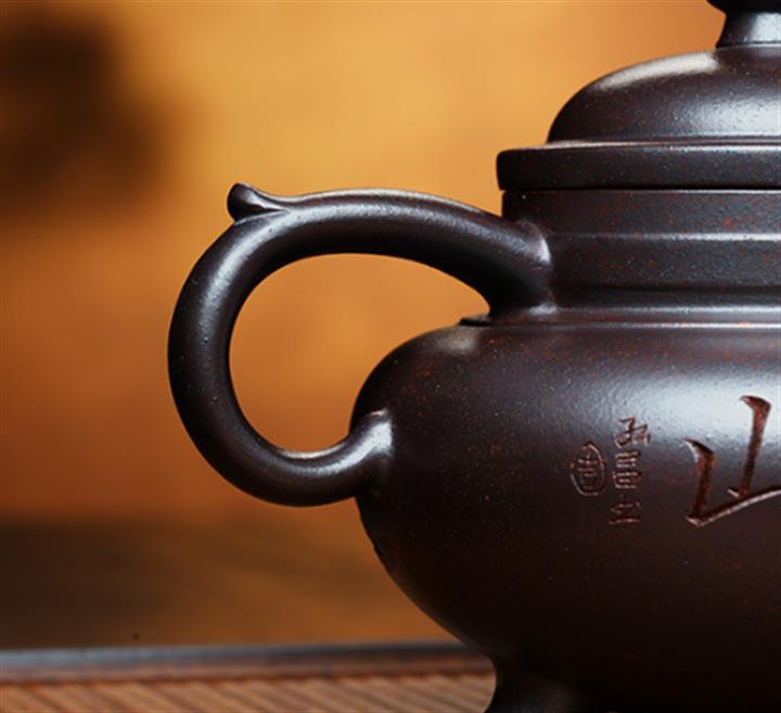 【泥料特點】砂土氣重,似淳實農民,日久使用,漸露鋒芒,養成變化,溫潤莊重。紫砂是壹種雙重氣孔結構的多孔性材質,氣孔微細,密度高。用紫砂壺沏茶,不失原味,且香不渙散,得茶之真香真味。紫砂使用越久,壺身色澤越發光亮照人,氣韻溫雅。紫砂壺長久使用器身會因撫摸擦拭,變得越發溫潤光澤。