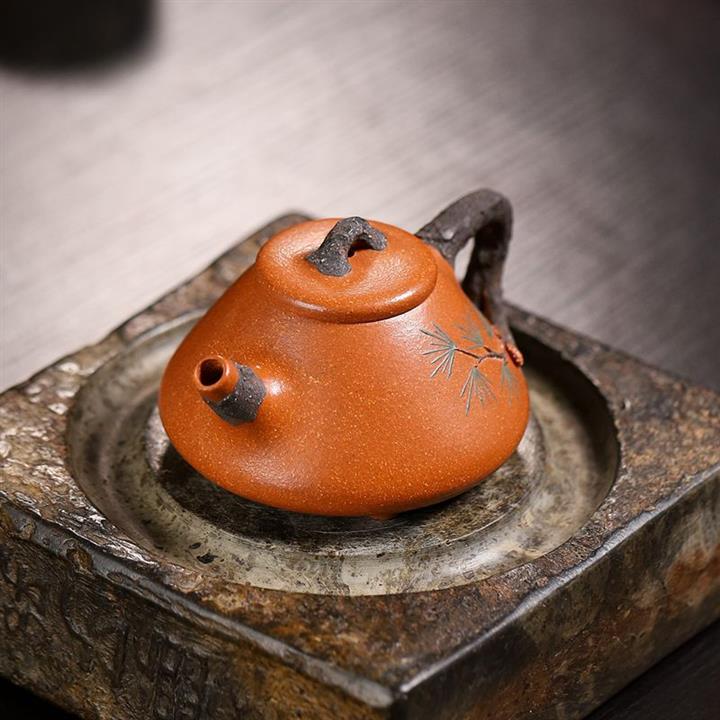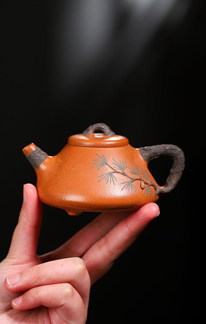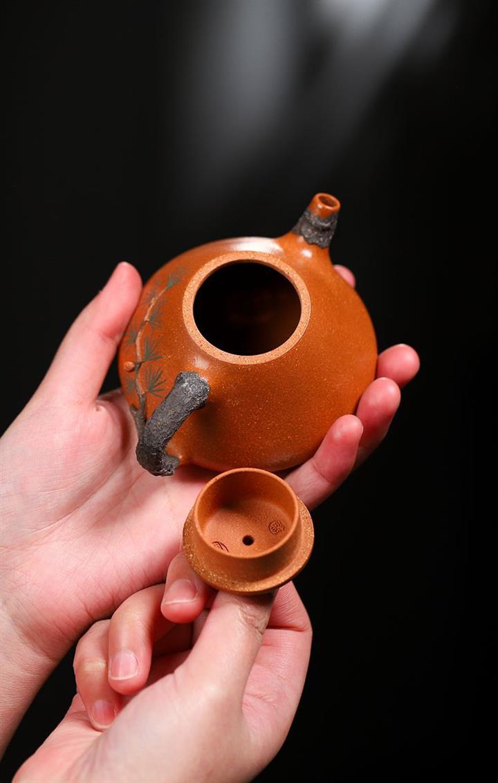【泥料特點】砂土氣重,似淳實農民,日久使用,漸露鋒芒,養成變化,溫潤莊重。紫砂是壹種雙重氣孔結構的多孔性材質,氣孔微細,密度高。用紫砂壺沏茶,不失原味,且香不渙散,得茶之真香真味。紫砂使用越久,壺身色澤越發光亮照人,氣韻溫雅。紫砂壺長久使用器身會因撫摸擦拭,變得越發溫潤光澤。