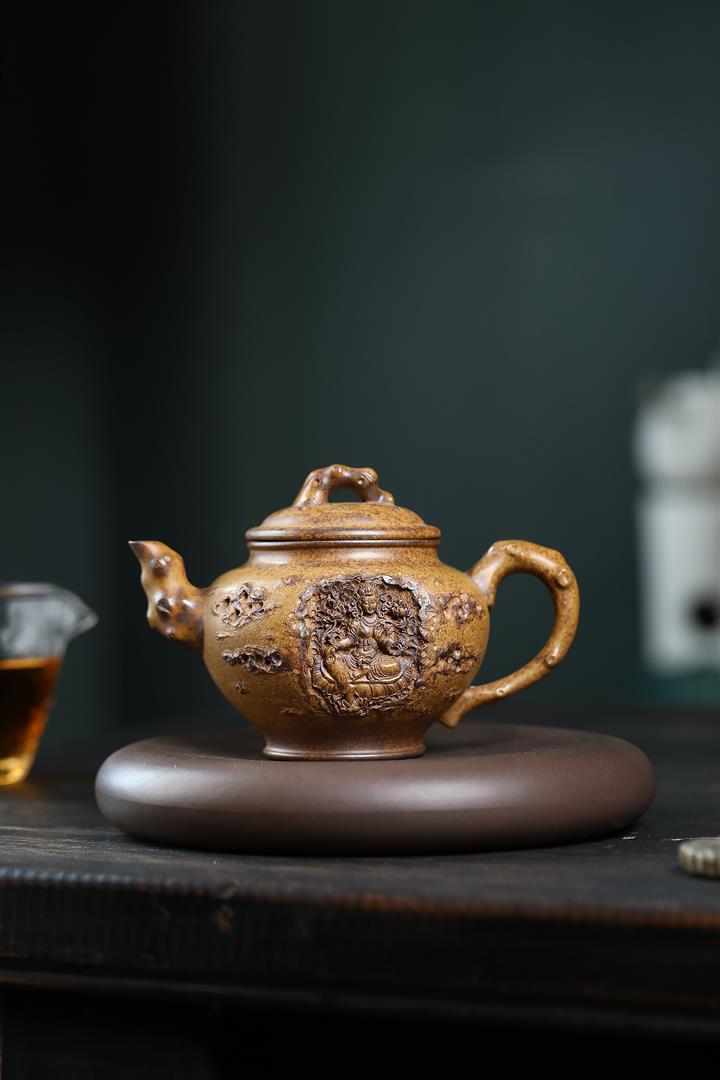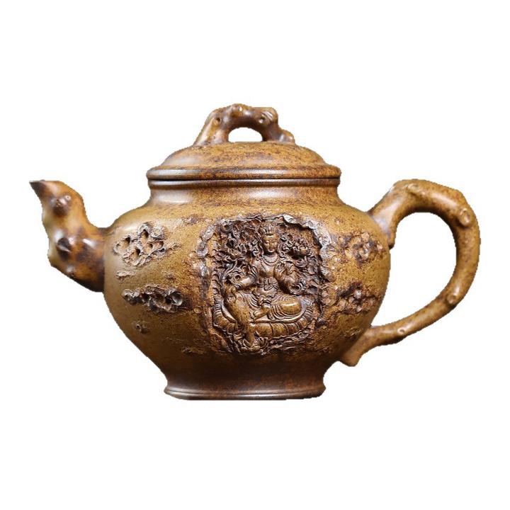 340cc原礦龍骨金砂報春-鏤空觀音茶壺POT8965
