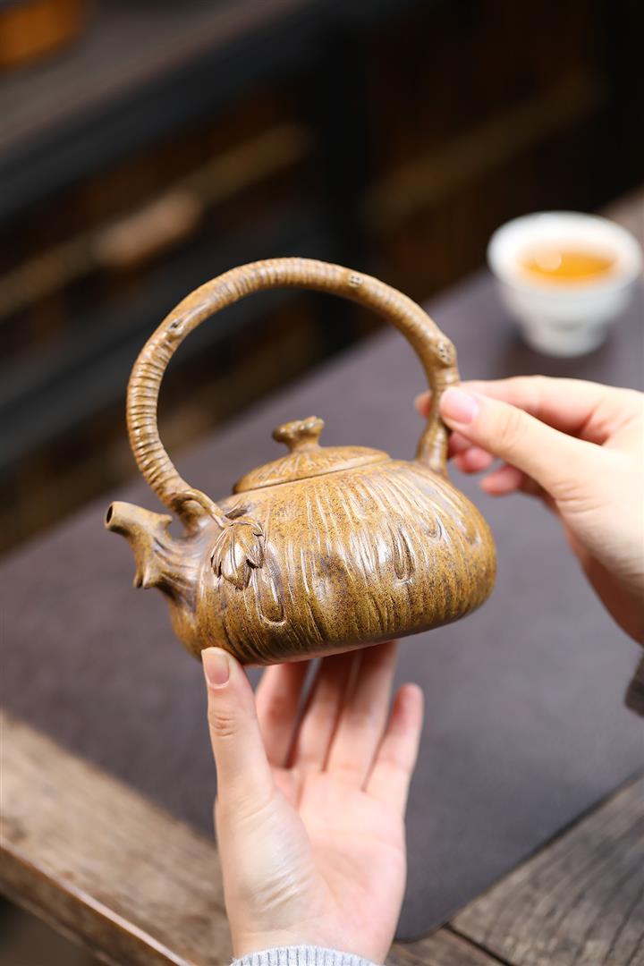 380cc原礦龍骨金砂供春提梁茶壺POT8969
