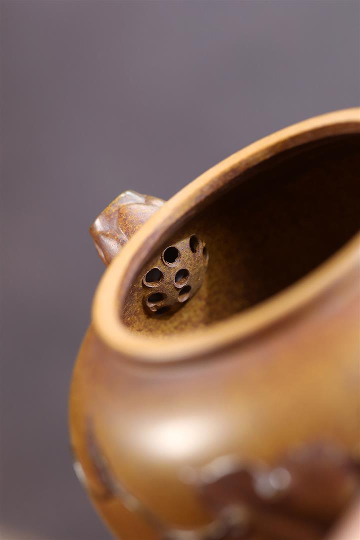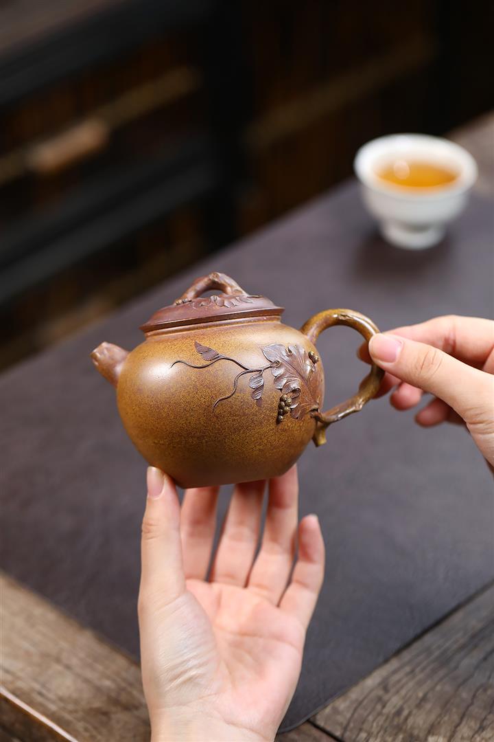 【作品介紹】此款壺形線條流暢,壺把,壺嘴,壺身壹氣呵成栩栩如生,是收藏把玩的好壺,泥料色澤古樸典雅,日久使用,漸露鋒芒,養成變化快,溫潤莊重,用其泡茶,使用的年代久,壺身就溫潤,泡出來的茶湯也就醇郁芳馨。