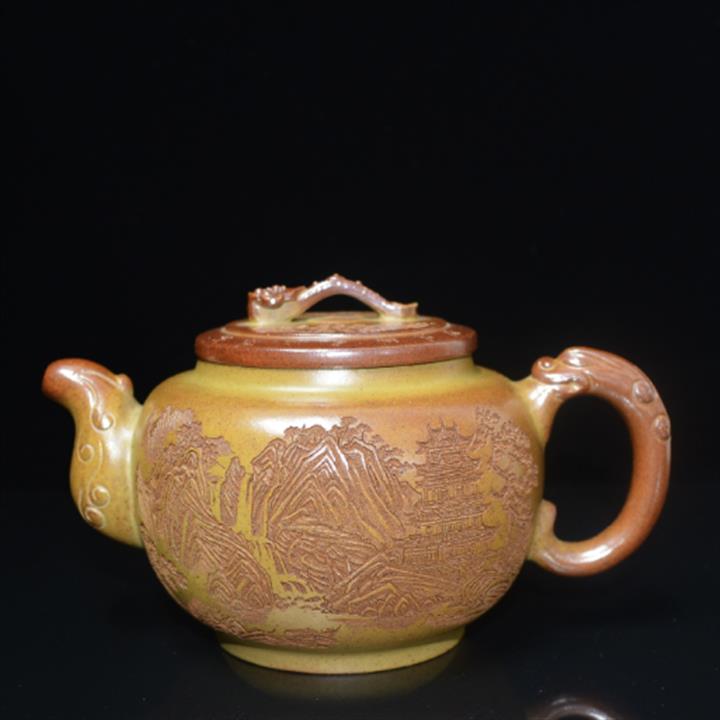 300cc原礦高溫段泥刻繪長城德鐘茶壺POT8389