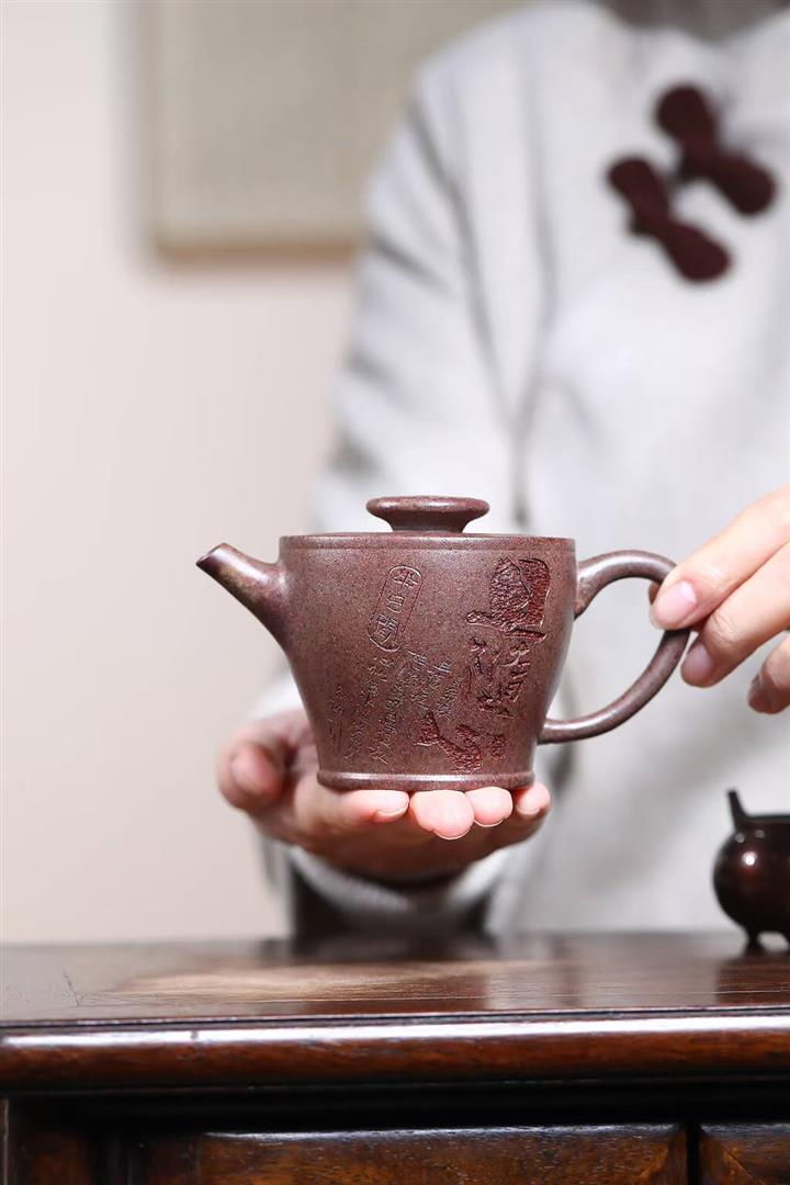 【作品介紹】此款壺形線條流暢,壺把,壺嘴,壺身壹氣呵成栩栩如生,是收藏把玩的好壺,泥料色澤古樸典雅,日久使用,漸露鋒芒,養成變化快,溫潤莊重,用其泡茶,使用的年代久,壺身就溫潤,泡出來的茶湯也就醇郁芳馨。