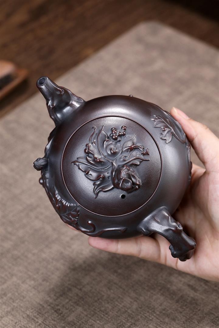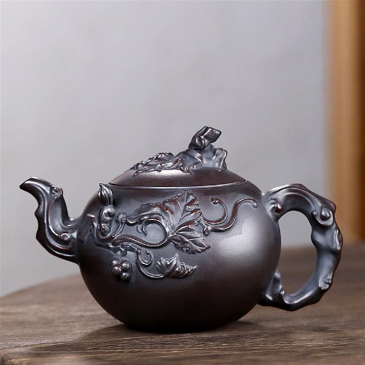 410cc原礦古銅泥松鼠葡萄茶壺POT9028