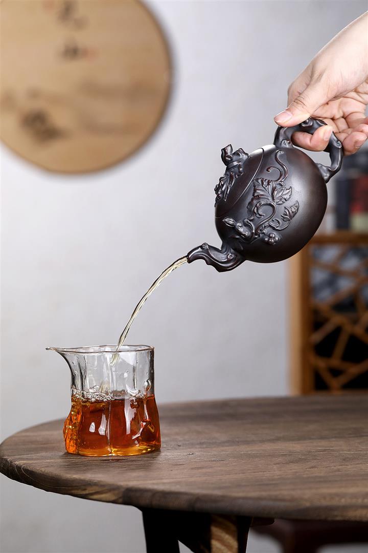 【泥料特點】砂土氣重,似淳實農民,日久使用,漸露鋒芒,養成變化,溫潤莊重。紫砂是壹種雙重氣孔結構的多孔性材質,氣孔微細,密度高。用紫砂壺沏茶,不失原味,且香不渙散,得茶之真香真味。紫砂使用越久,壺身色澤越發光亮照人,氣韻溫雅。紫砂壺長久使用器身會因撫摸擦拭,變得越發溫潤光澤。