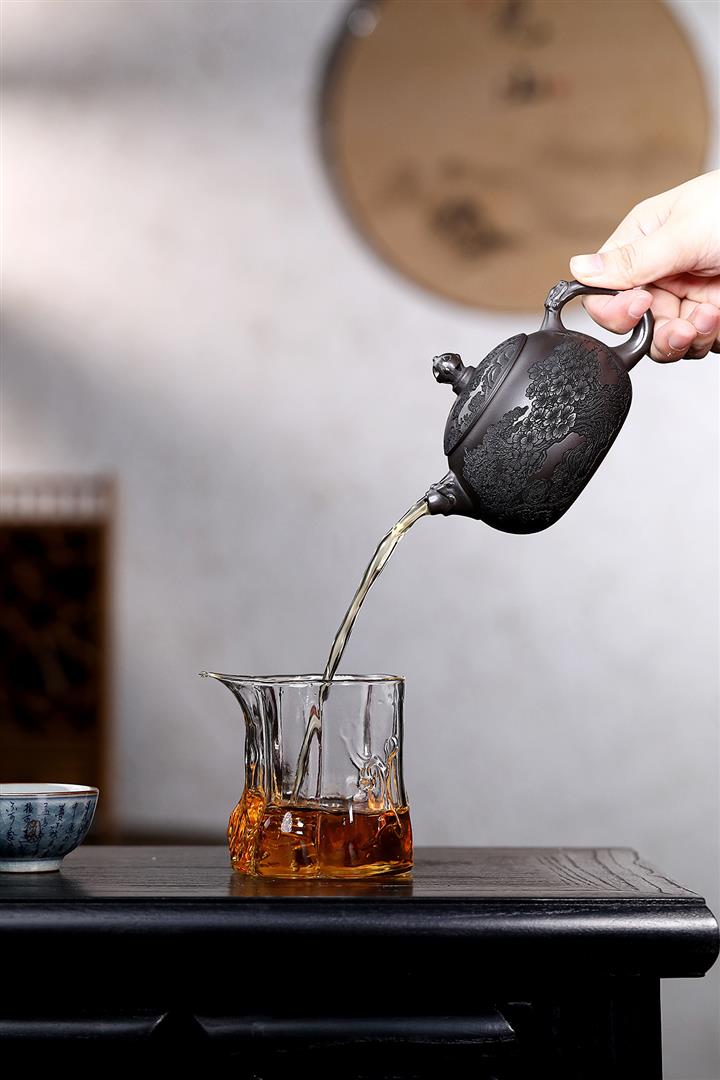 【泥料特點】砂土氣重,似淳實農民,日久使用,漸露鋒芒,養成變化,溫潤莊重。紫砂是壹種雙重氣孔結構的多孔性材質,氣孔微細,密度高。用紫砂壺沏茶,不失原味,且香不渙散,得茶之真香真味。紫砂使用越久,壺身色澤越發光亮照人,氣韻溫雅。紫砂壺長久使用器身會因撫摸擦拭,變得越發溫潤光澤。