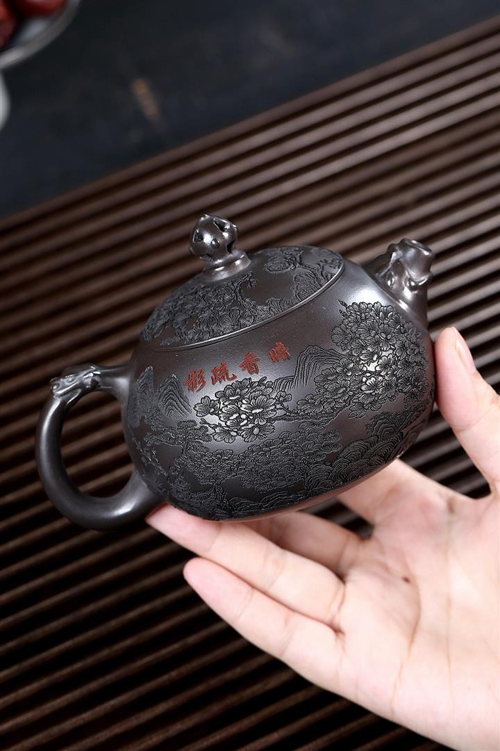 300cc原礦高溫段泥刻繪長城德鐘茶壺POT8389