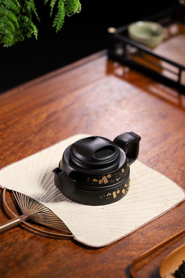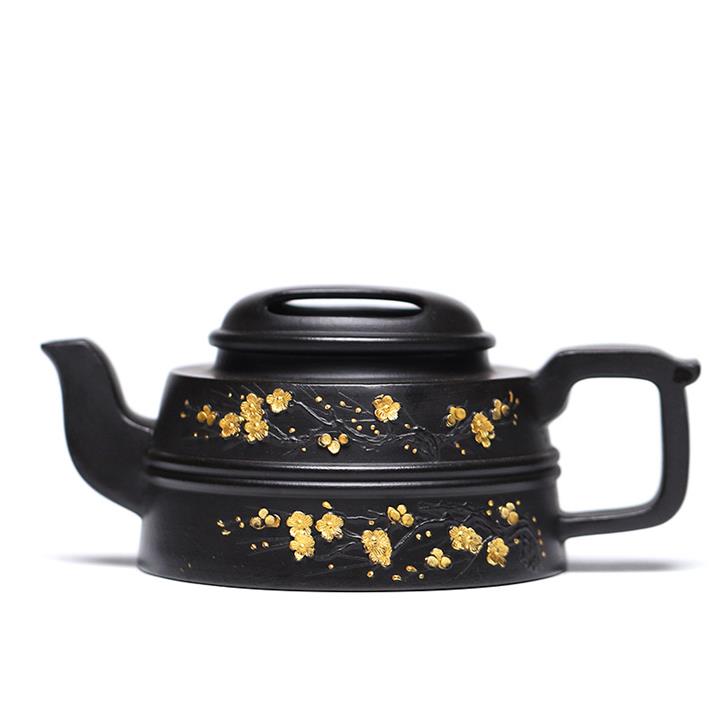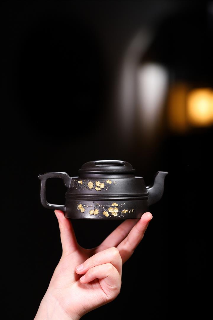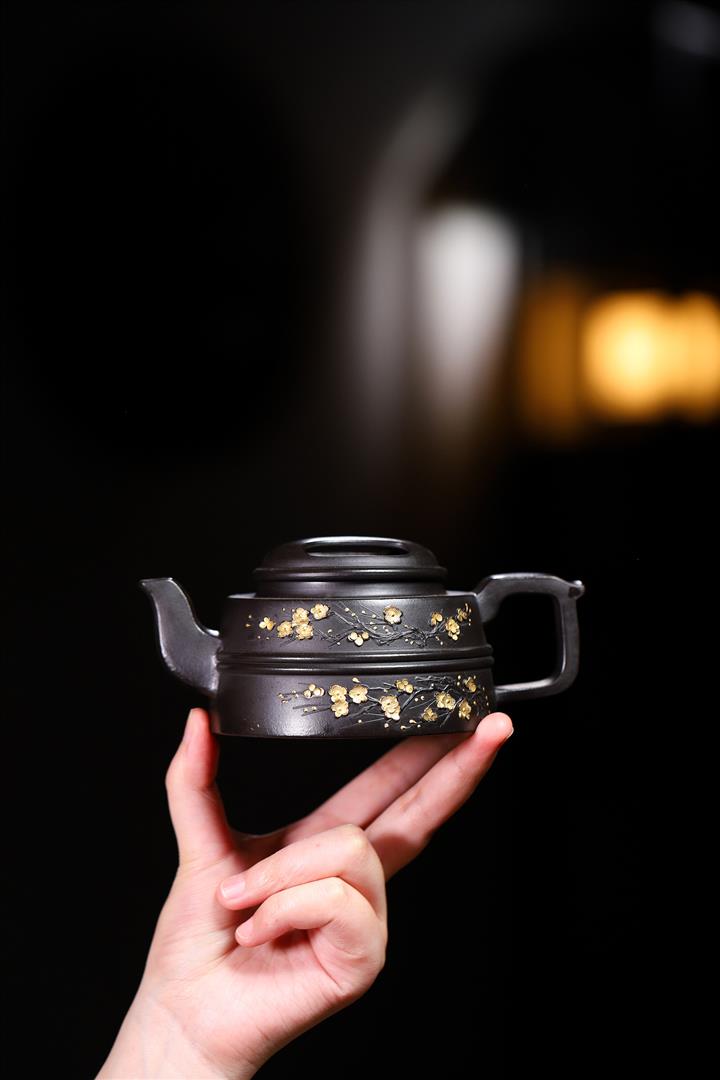 220cc原礦 大紅袍還原燒堆繪金梅花牛蓋茶壺POT9030