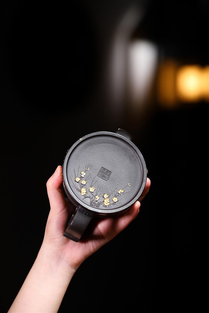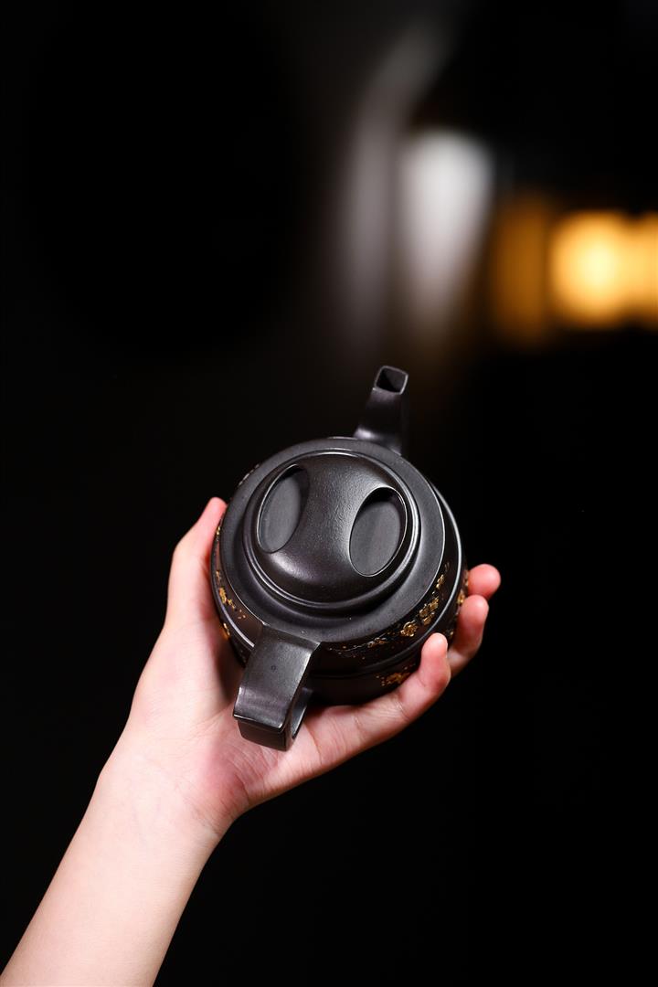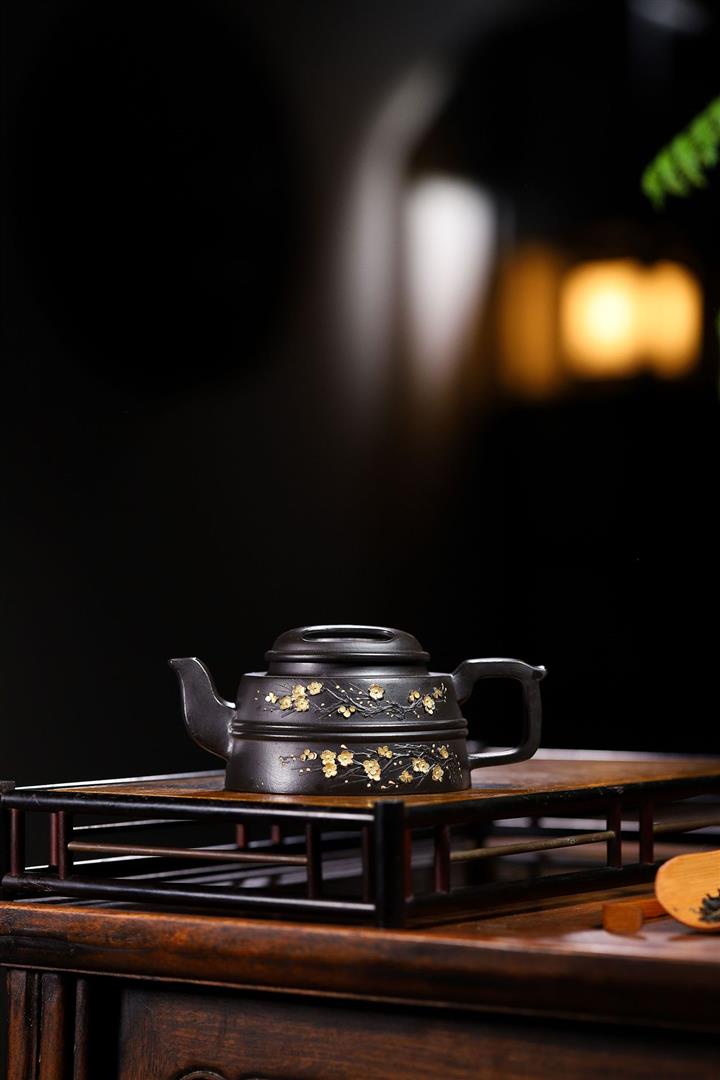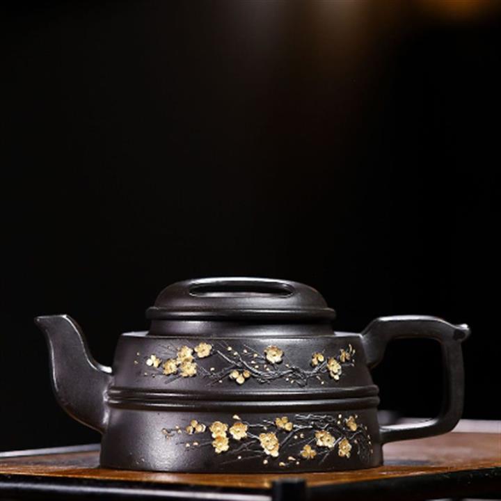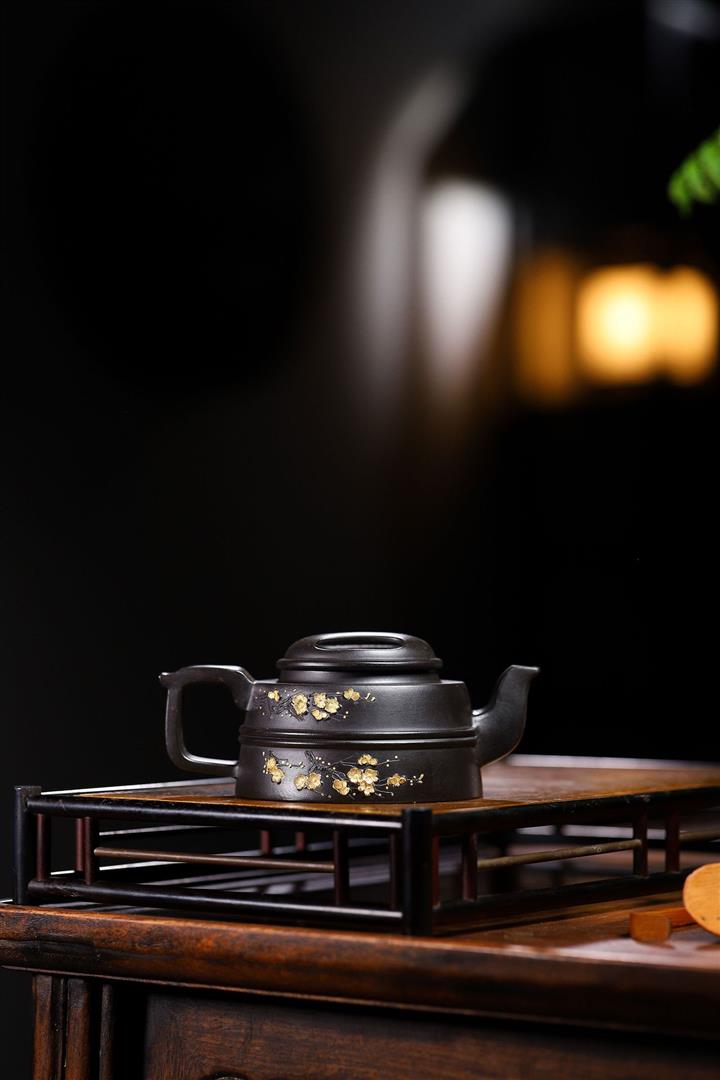 220cc原礦 大紅袍還原燒堆繪金梅花牛蓋茶壺POT9030