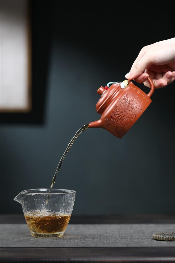 【泥料特點】砂土氣重,似淳實農民,日久使用,漸露鋒芒,養成變化,溫潤莊重。紫砂是壹種雙重氣孔結構的多孔性材質,氣孔微細,密度高。用紫砂壺沏茶,不失原味,且香不渙散,得茶之真香真味。紫砂使用越久,壺身色澤越發光亮照人,氣韻溫雅。紫砂壺長久使用器身會因撫摸擦拭,變得越發溫潤光澤。
