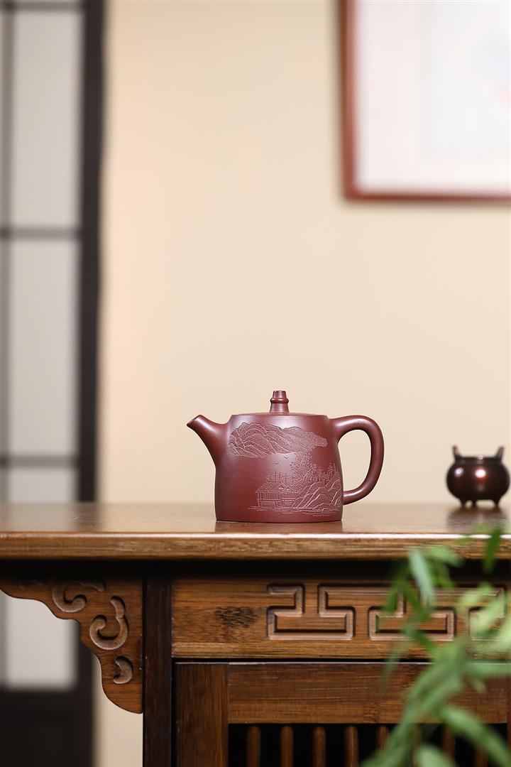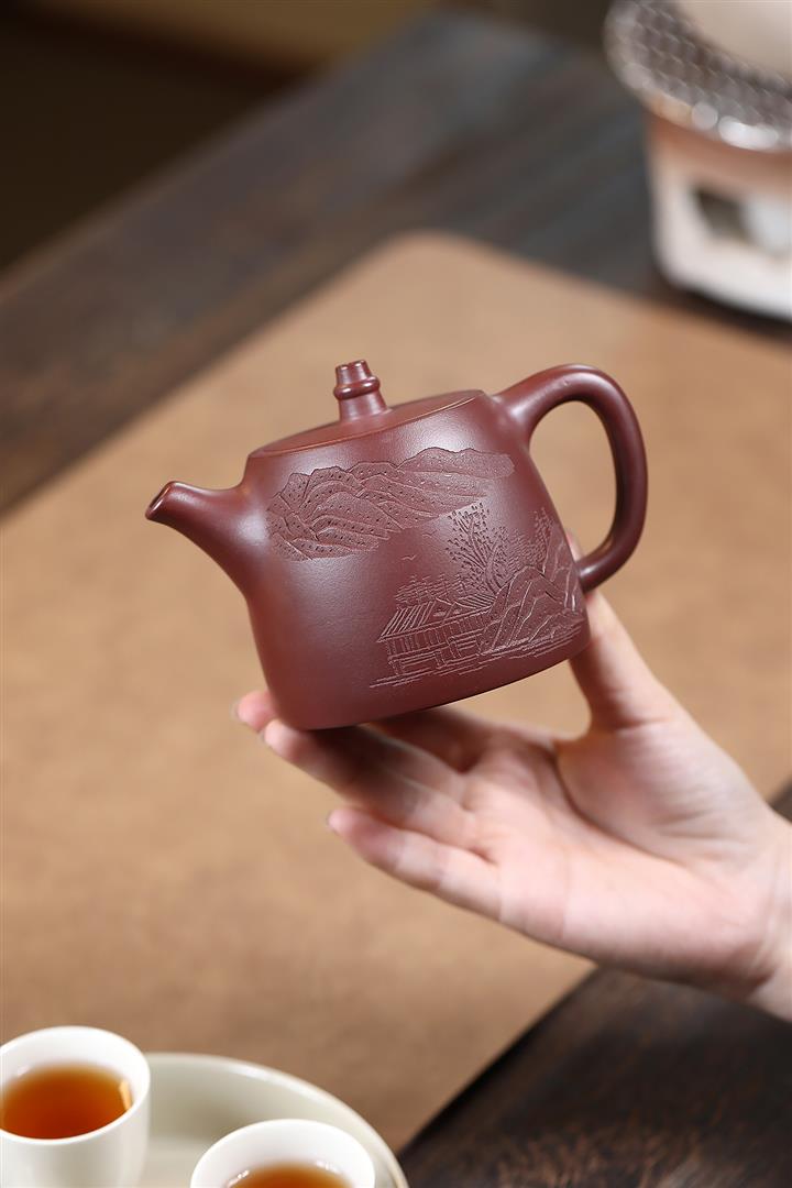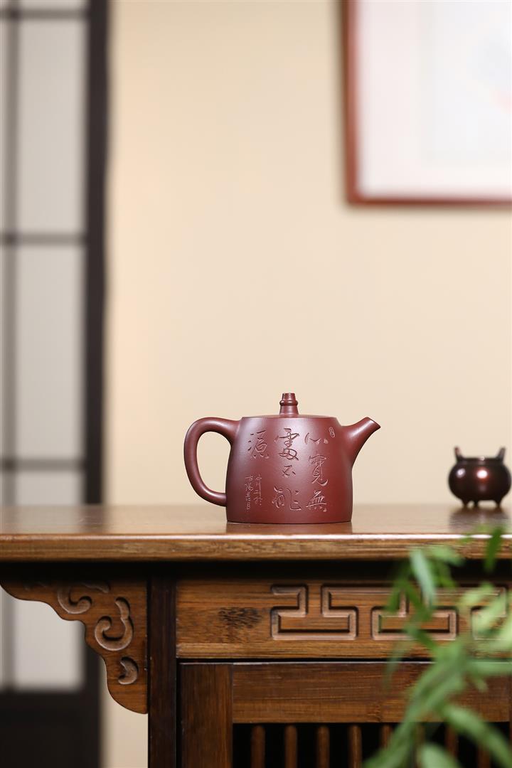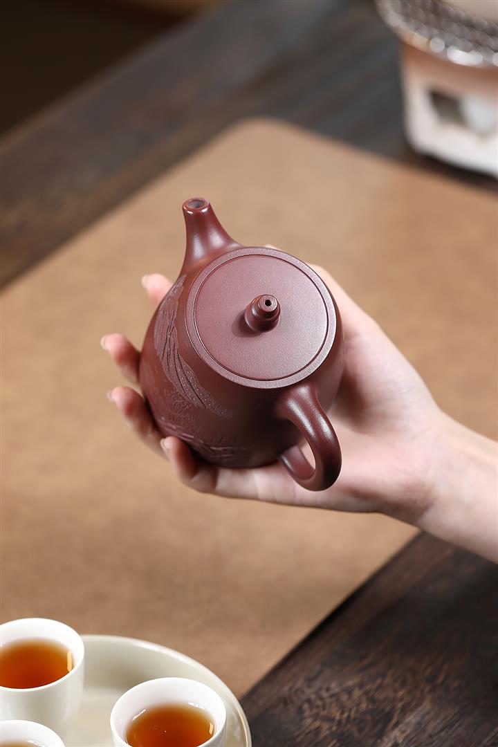 【泥料特點】砂土氣重,似淳實農民,日久使用,漸露鋒芒,養成變化,溫潤莊重。紫砂是壹種雙重氣孔結構的多孔性材質,氣孔微細,密度高。用紫砂壺沏茶,不失原味,且香不渙散,得茶之真香真味。紫砂使用越久,壺身色澤越發光亮照人,氣韻溫雅。紫砂壺長久使用器身會因撫摸擦拭,變得越發溫潤光澤。