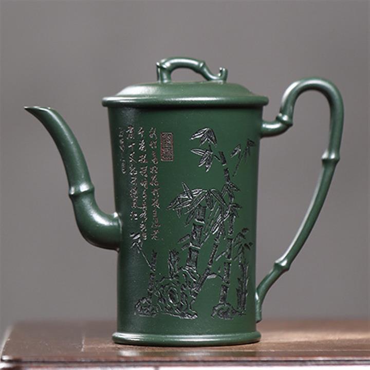 原礦綠泥刻繪花鳥宮燈茶壺POT7623