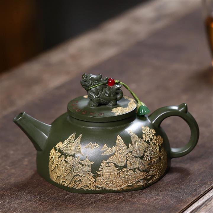 原礦翡翠綠泥刻繪漢韻茶壺POT7866