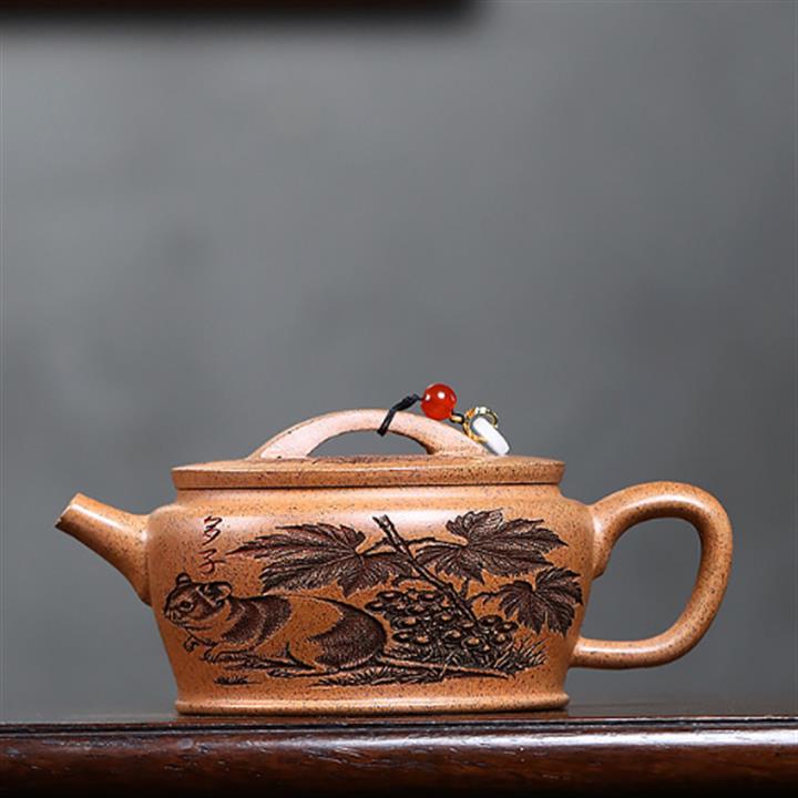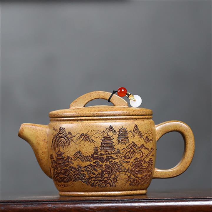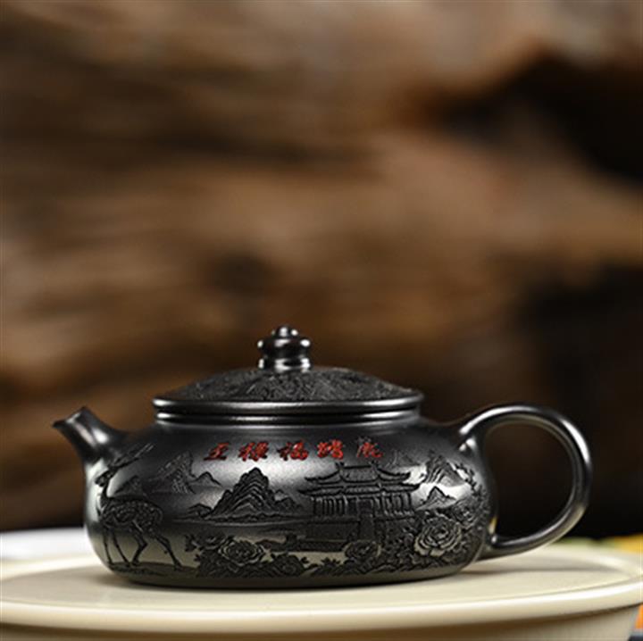 原礦段泥柴燒刻繪德鐘茶壺POT7864