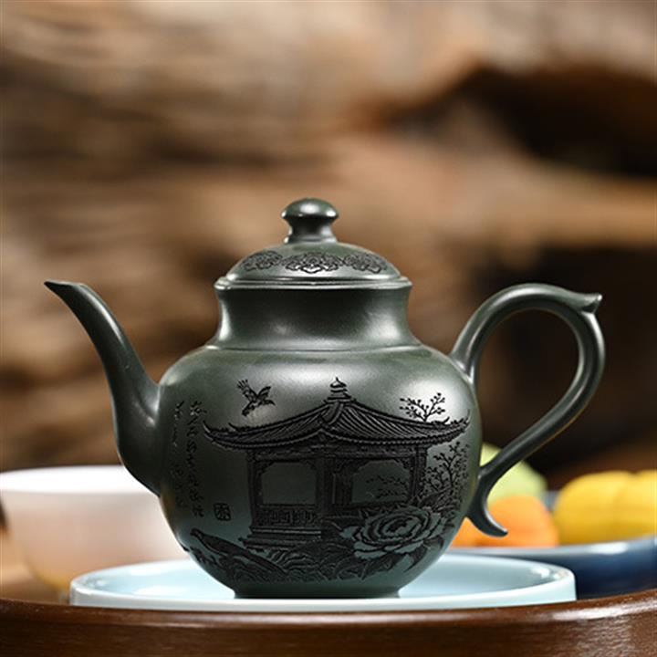 原礦綠泥刻繪掇球泡茶壺POT7865