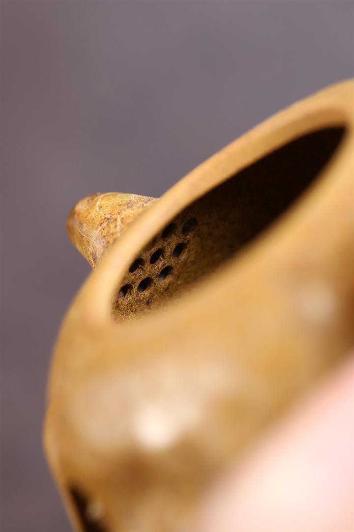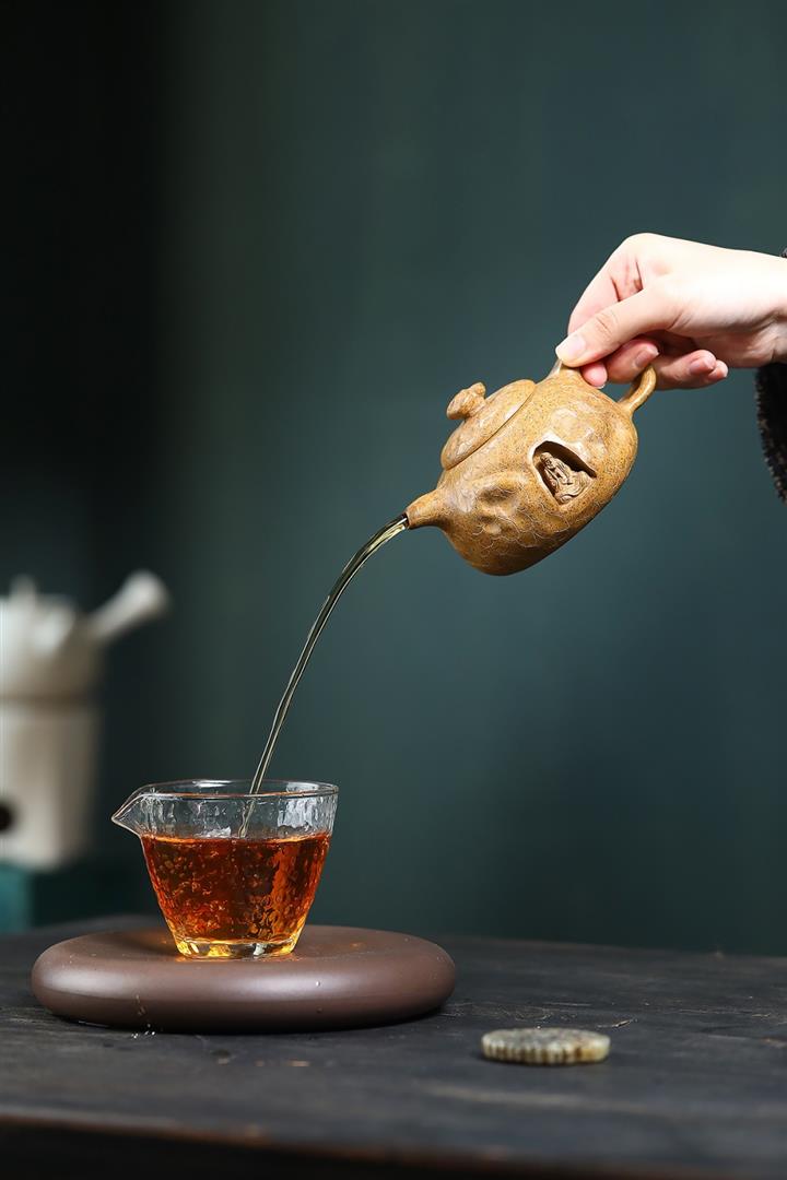 【泥料特點】砂土氣重,似淳實農民,日久使用,漸露鋒芒,養成變化,溫潤莊重。紫砂是壹種雙重氣孔結構的多孔性材質,氣孔微細,密度高。用紫砂壺沏茶,不失原味,且香不渙散,得茶之真香真味。紫砂使用越久,壺身色澤越發光亮照人,氣韻溫雅。紫砂壺長久使用器身會因撫摸擦拭,變得越發溫潤光澤。