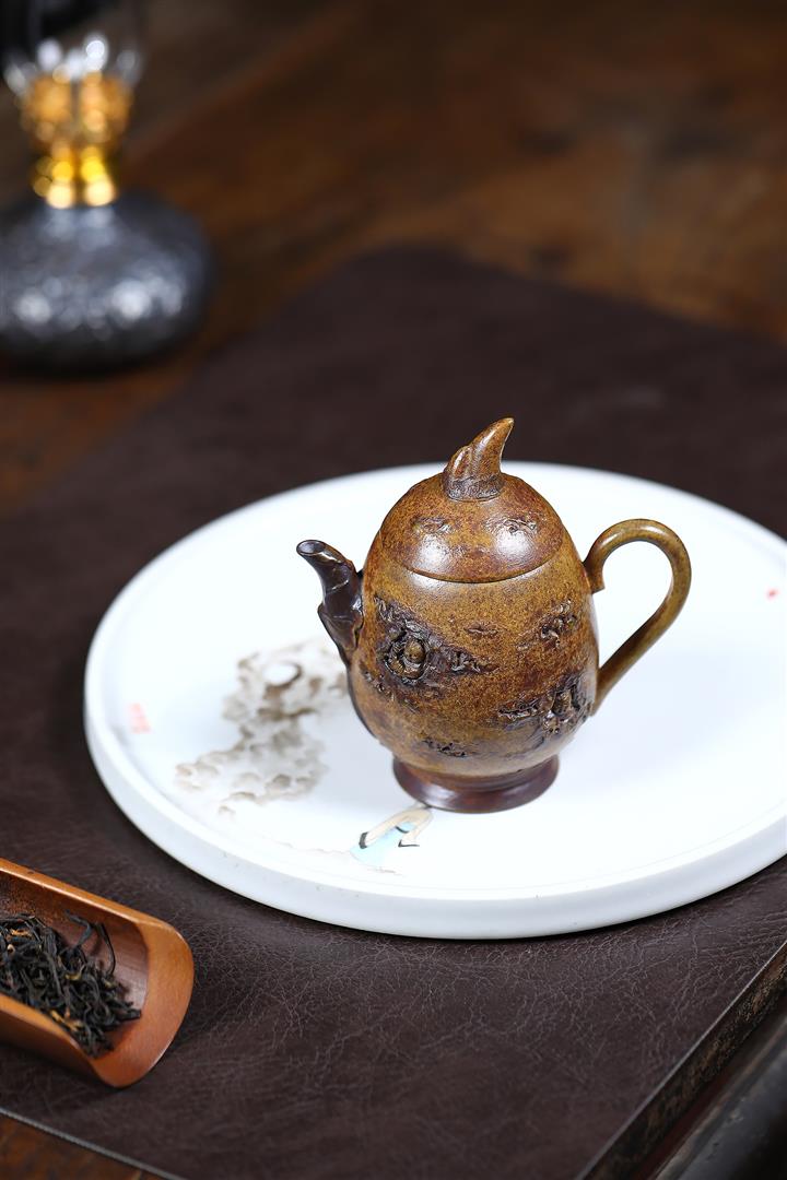 【泥料特點】砂土氣重,似淳實農民,日久使用,漸露鋒芒,養成變化,溫潤莊重。紫砂是壹種雙重氣孔結構的多孔性材質,氣孔微細,密度高。用紫砂壺沏茶,不失原味,且香不渙散,得茶之真香真味。紫砂使用越久,壺身色澤越發光亮照人,氣韻溫雅。紫砂壺長久使用器身會因撫摸擦拭,變得越發溫潤光澤。