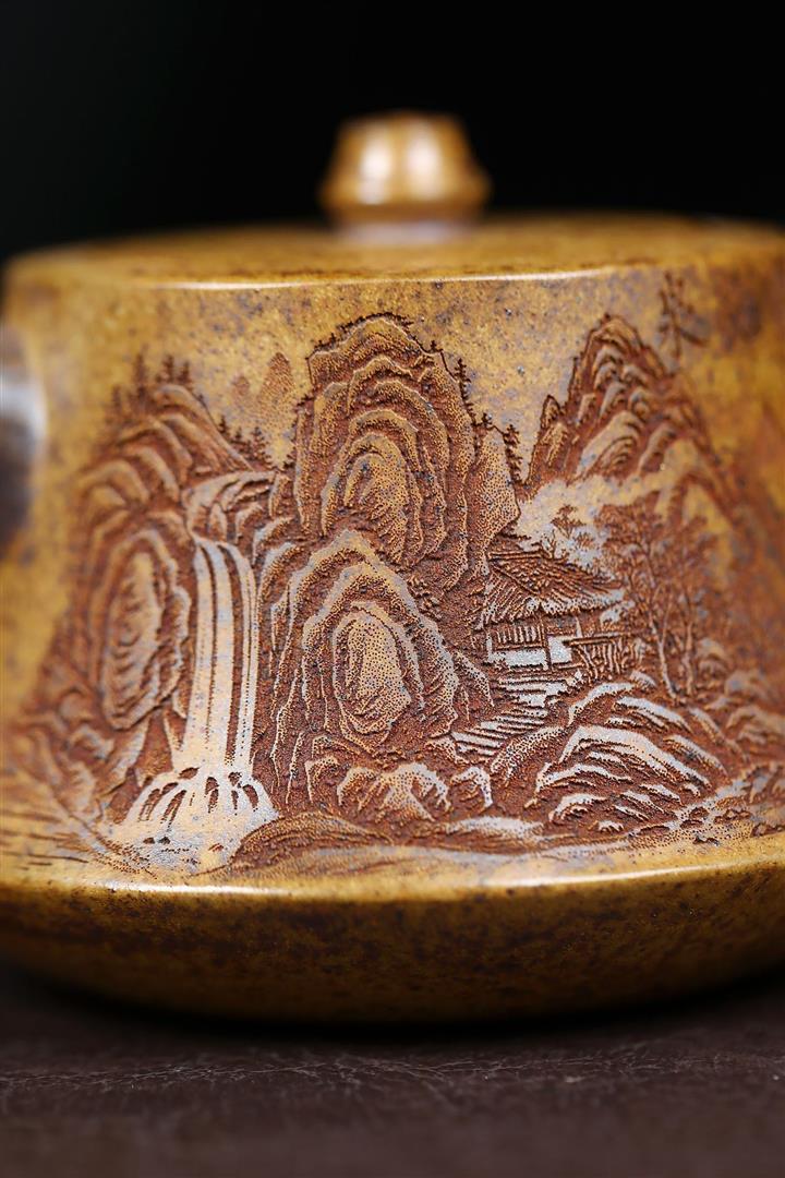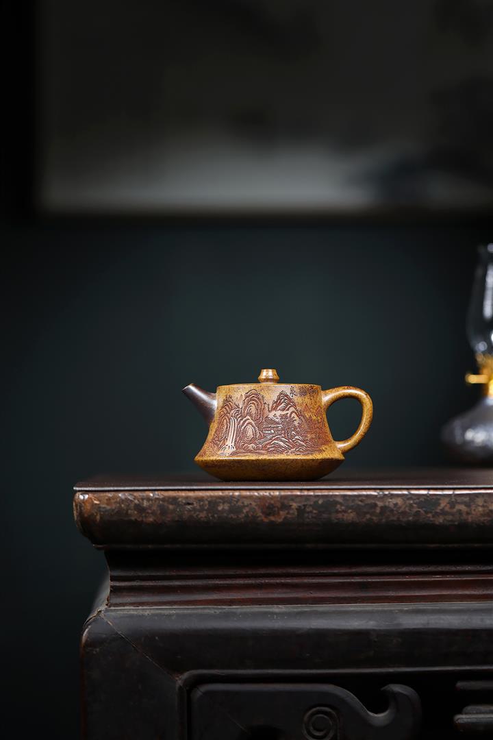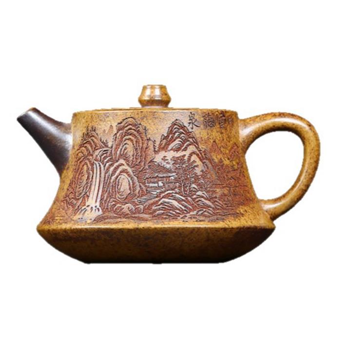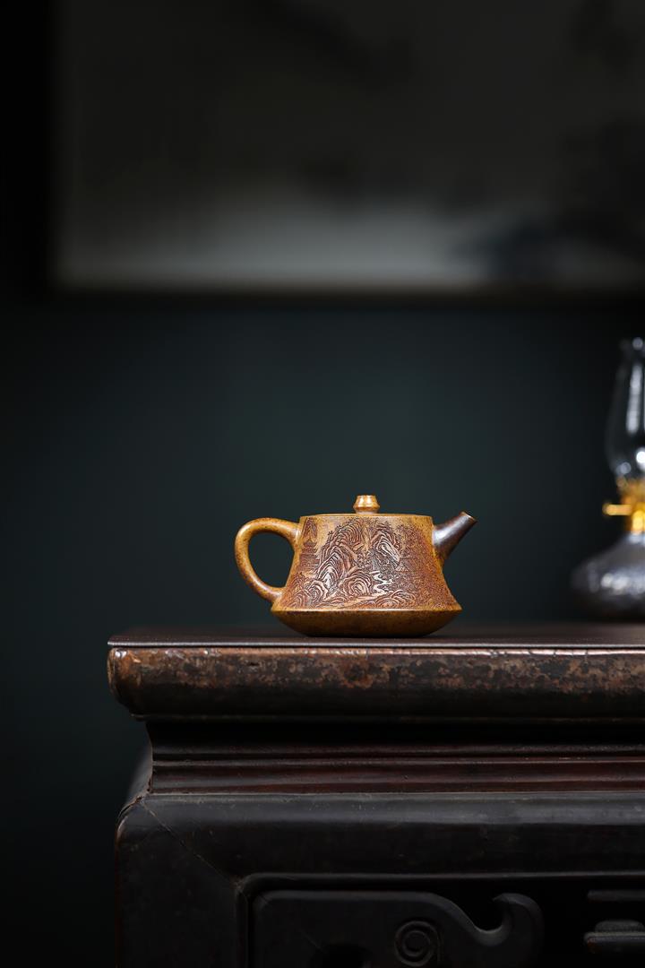 200cc原礦高溫柴燒龍骨金砂山水礎柱茶壺POT9097