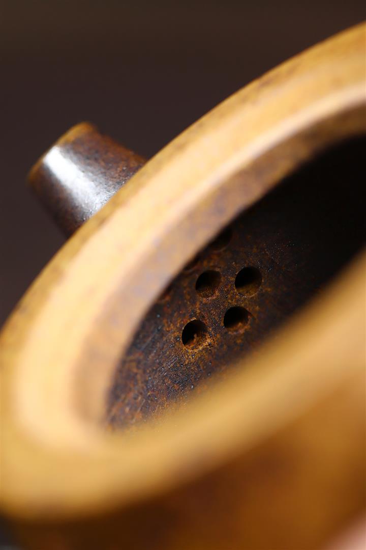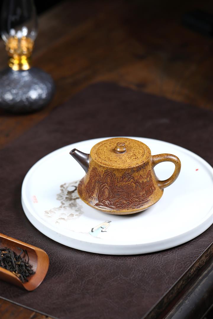 【泥料特點】砂土氣重,似淳實農民,日久使用,漸露鋒芒,養成變化,溫潤莊重。紫砂是壹種雙重氣孔結構的多孔性材質,氣孔微細,密度高。用紫砂壺沏茶,不失原味,且香不渙散,得茶之真香真味。紫砂使用越久,壺身色澤越發光亮照人,氣韻溫雅。紫砂壺長久使用器身會因撫摸擦拭,變得越發溫潤光澤。