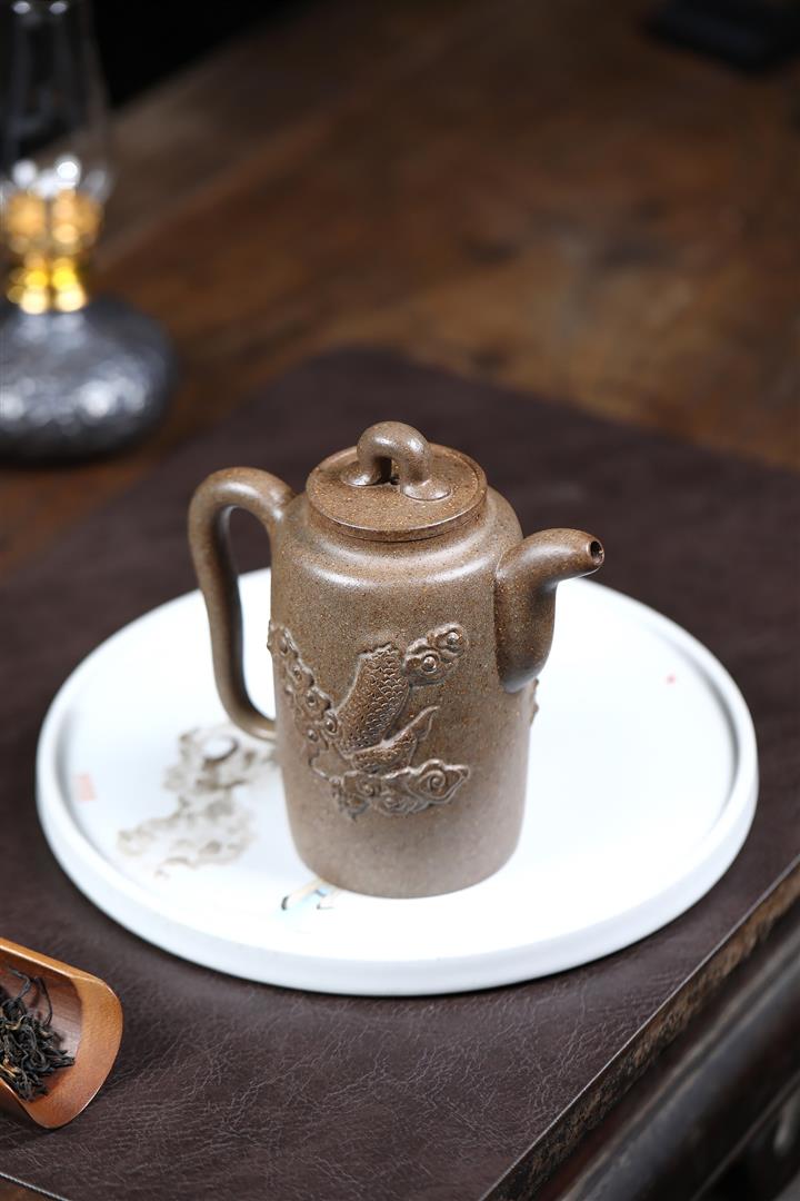 【作品介紹】此款壺形線條流暢,壺把,壺嘴,壺身壹氣呵成栩栩如生,是收藏把玩的好壺,泥料色澤古樸典雅,日久使用,漸露鋒芒,養成變化快,溫潤莊重,用其泡茶,使用的年代久,壺身就溫潤,泡出來的茶湯也就醇郁芳馨。