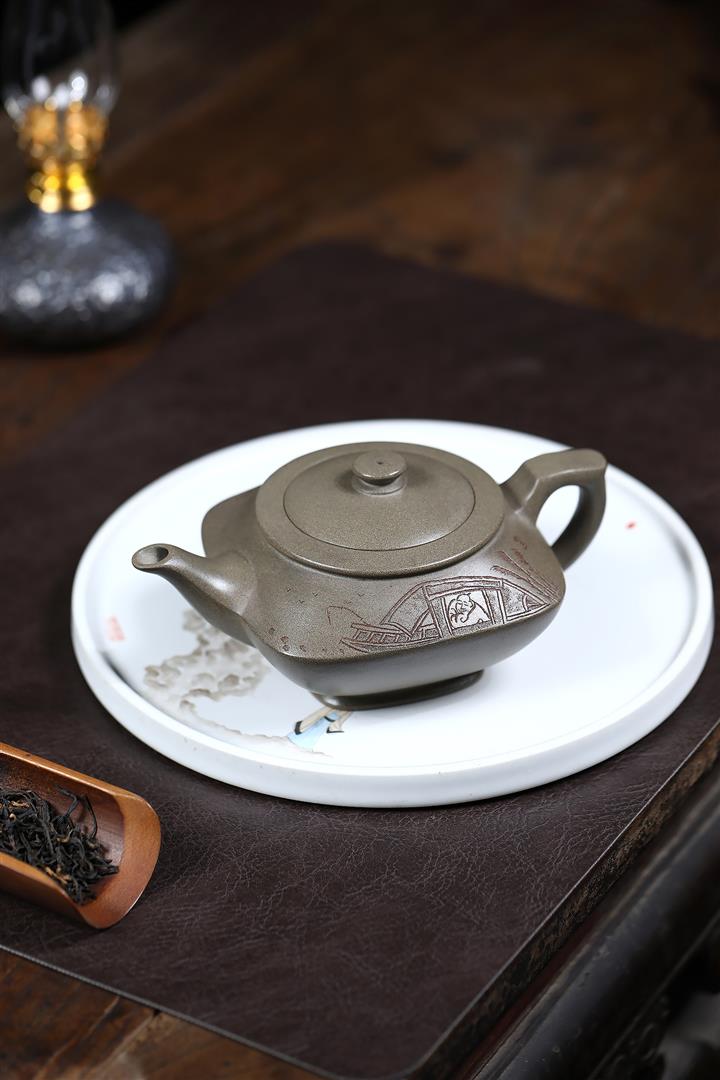 【泥料特點】砂土氣重,似淳實農民,日久使用,漸露鋒芒,養成變化,溫潤莊重。紫砂是壹種雙重氣孔結構的多孔性材質,氣孔微細,密度高。用紫砂壺沏茶,不失原味,且香不渙散,得茶之真香真味。紫砂使用越久,壺身色澤越發光亮照人,氣韻溫雅。紫砂壺長久使用器身會因撫摸擦拭,變得越發溫潤光澤。