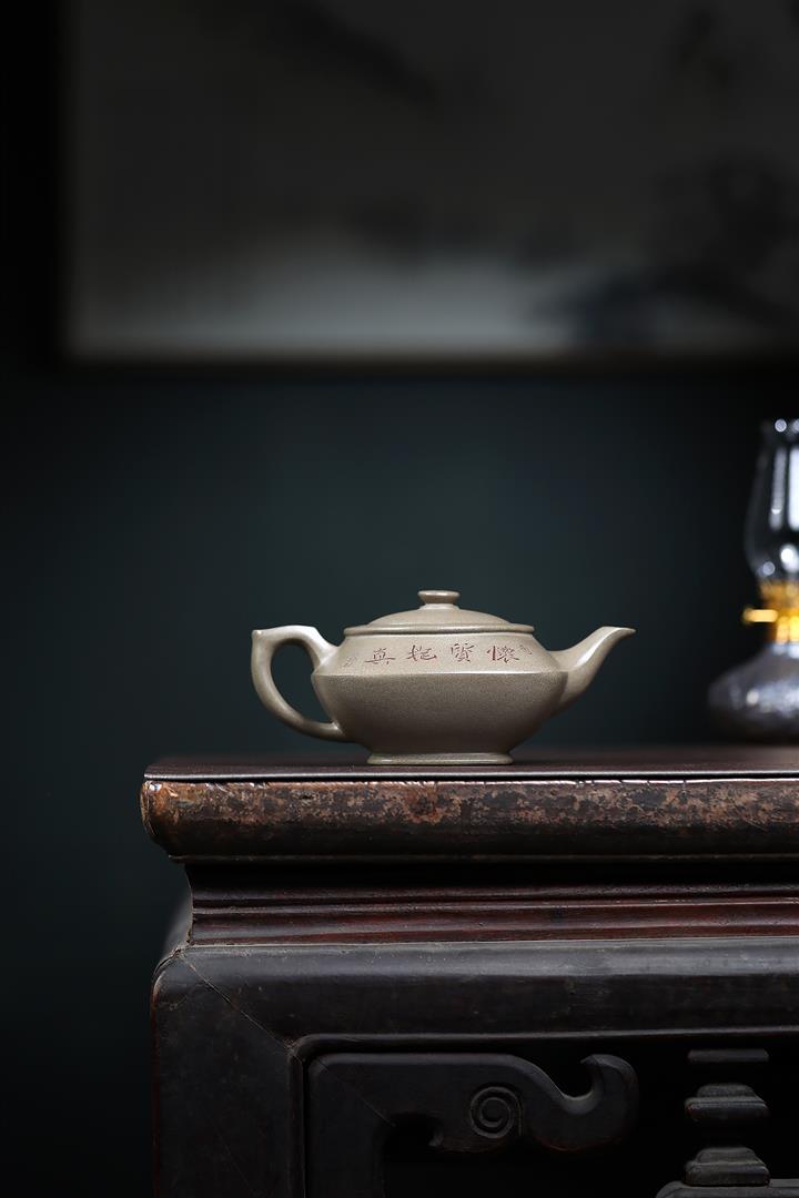 300cc原礦蟹殼青泥四方漢雲茶壺POT9106