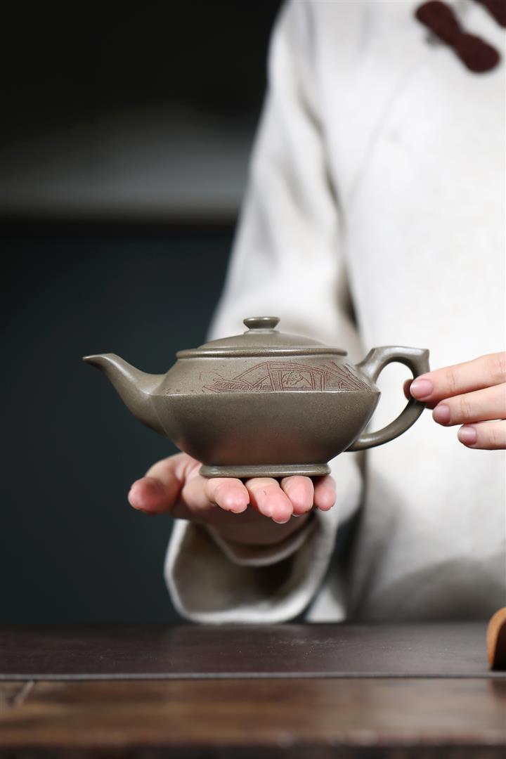 【作品介紹】此款壺形線條流暢,壺把,壺嘴,壺身壹氣呵成栩栩如生,是收藏把玩的好壺,泥料色澤古樸典雅,日久使用,漸露鋒芒,養成變化快,溫潤莊重,用其泡茶,使用的年代久,壺身就溫潤,泡出來的茶湯也就醇郁芳馨。