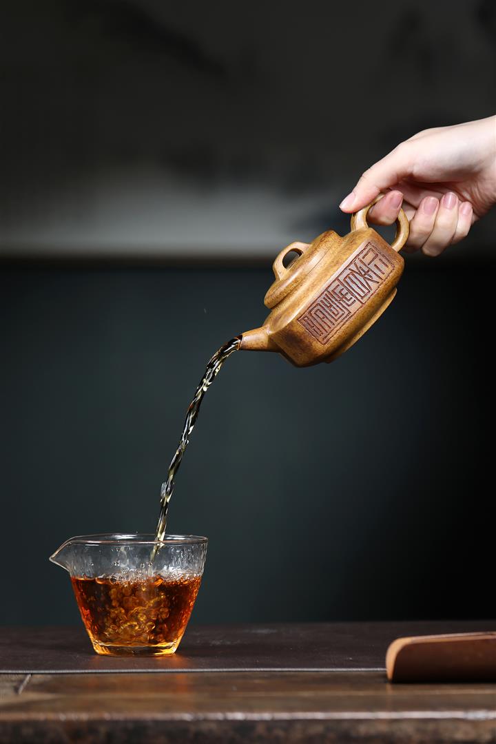 【泥料特點】砂土氣重,似淳實農民,日久使用,漸露鋒芒,養成變化,溫潤莊重。紫砂是壹種雙重氣孔結構的多孔性材質,氣孔微細,密度高。用紫砂壺沏茶,不失原味,且香不渙散,得茶之真香真味。紫砂使用越久,壺身色澤越發光亮照人,氣韻溫雅。紫砂壺長久使用器身會因撫摸擦拭,變得越發溫潤光澤。
