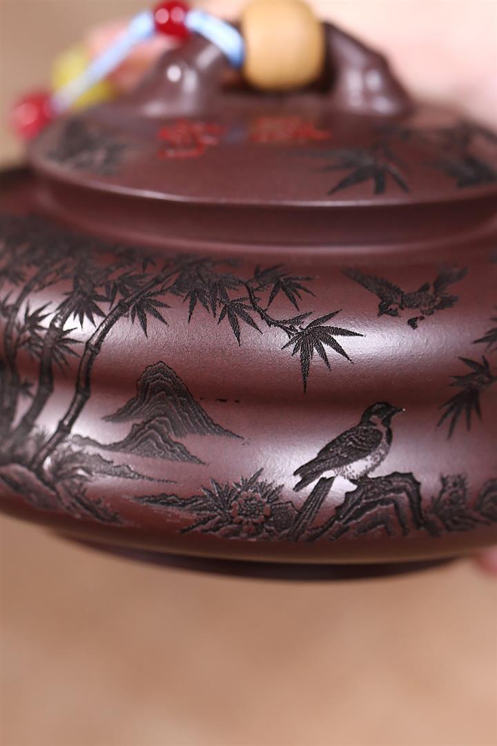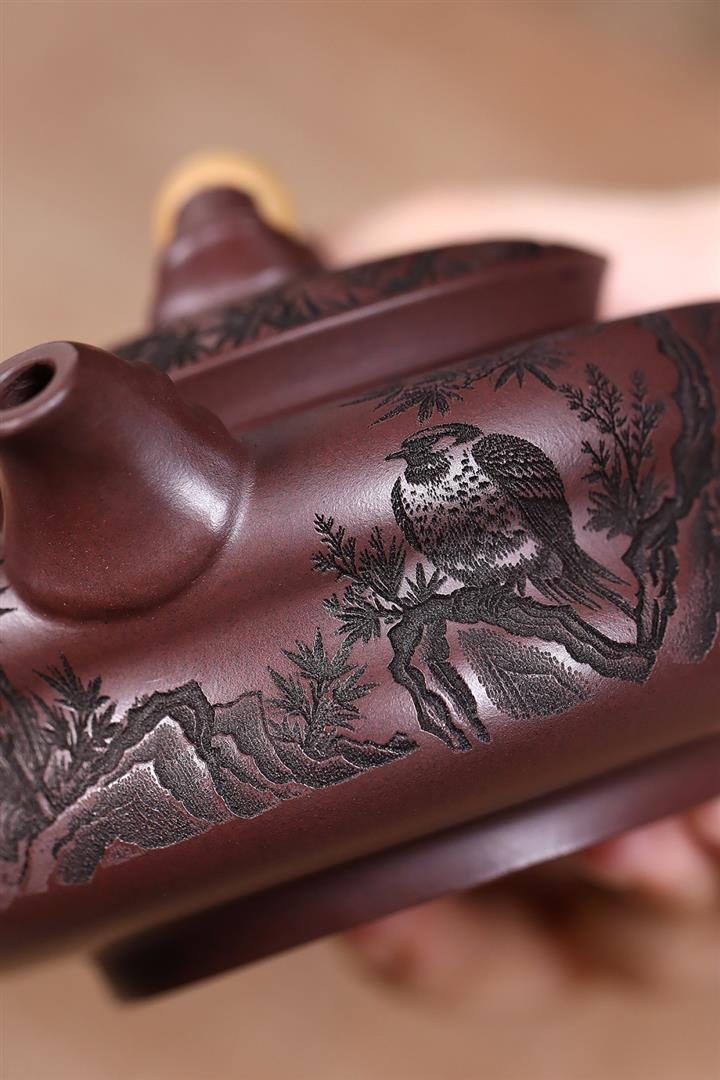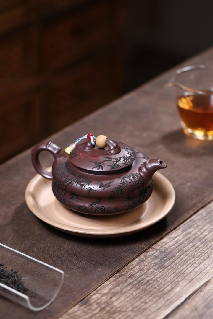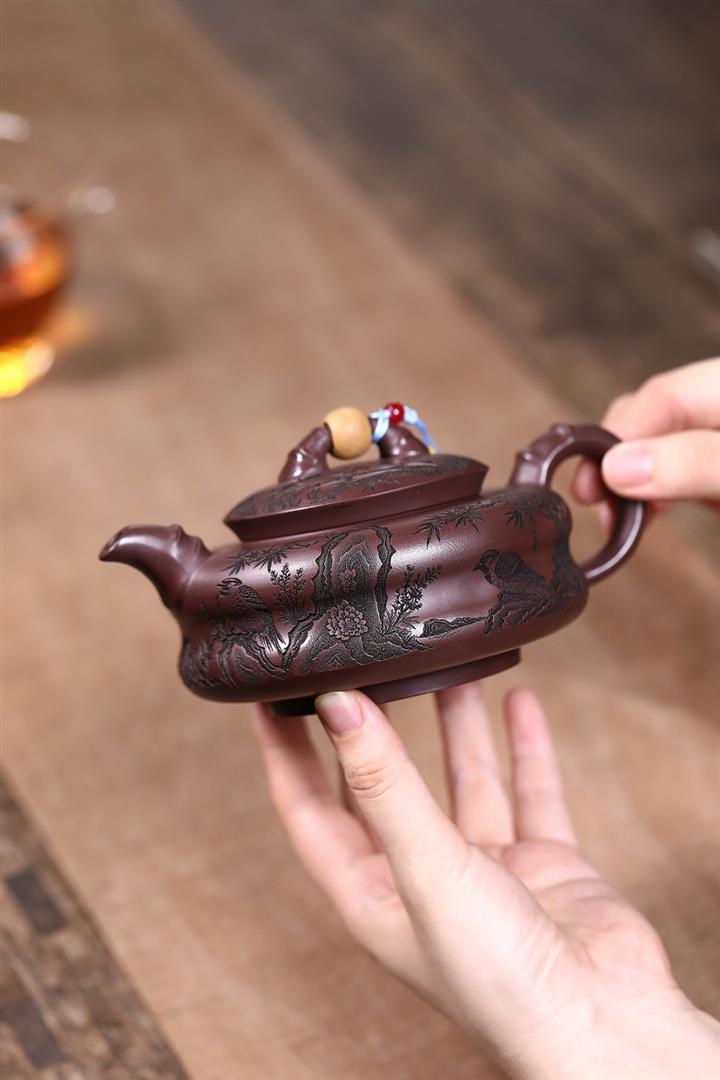 【作品介紹】此款壺形線條流暢,壺把,壺嘴,壺身壹氣呵成栩栩如生,是收藏把玩的好壺,泥料色澤古樸典雅,日久使用,漸露鋒芒,養成變化快,溫潤莊重,用其泡茶,使用的年代久,壺身就溫潤,泡出來的茶湯也就醇郁芳馨。