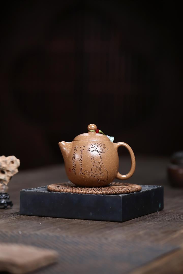 原礦赤金朱泥手工祥雲周盤茶壺POT6628