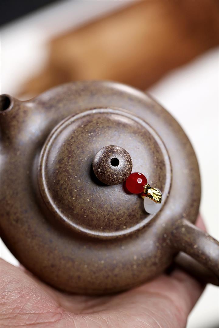 【泥料特點】砂土氣重,似淳實農民,日久使用,漸露鋒芒,養成變化,溫潤莊重。紫砂是壹種雙重氣孔結構的多孔性材質,氣孔微細,密度高。用紫砂壺沏茶,不失原味,且香不渙散,得茶之真香真味。紫砂使用越久,壺身色澤越發光亮照人,氣韻溫雅。紫砂壺長久使用器身會因撫摸擦拭,變得越發溫潤光澤。