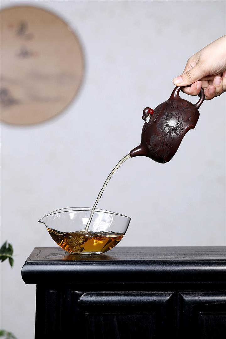 【泥料特點】砂土氣重,似淳實農民,日久使用,漸露鋒芒,養成變化,溫潤莊重。紫砂是壹種雙重氣孔結構的多孔性材質,氣孔微細,密度高。用紫砂壺沏茶,不失原味,且香不渙散,得茶之真香真味。紫砂使用越久,壺身色澤越發光亮照人,氣韻溫雅。紫砂壺長久使用器身會因撫摸擦拭,變得越發溫潤光澤。