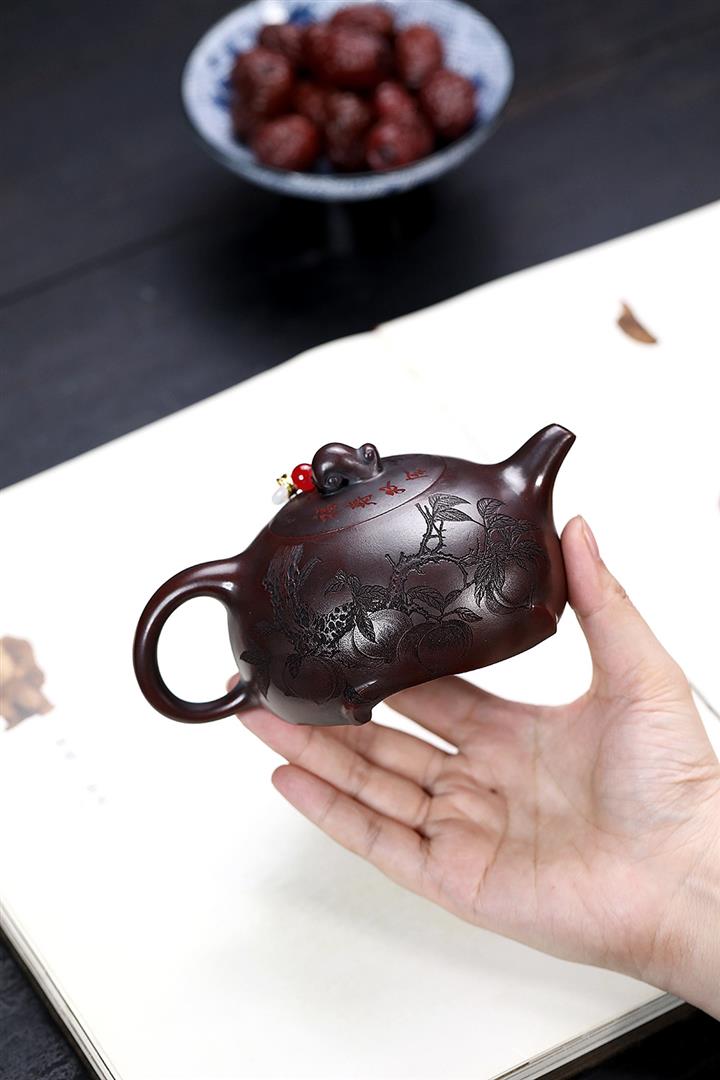原礦大紅袍泥青蛙石瓢紫砂壺POT5956