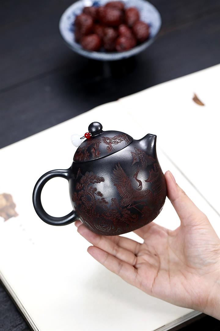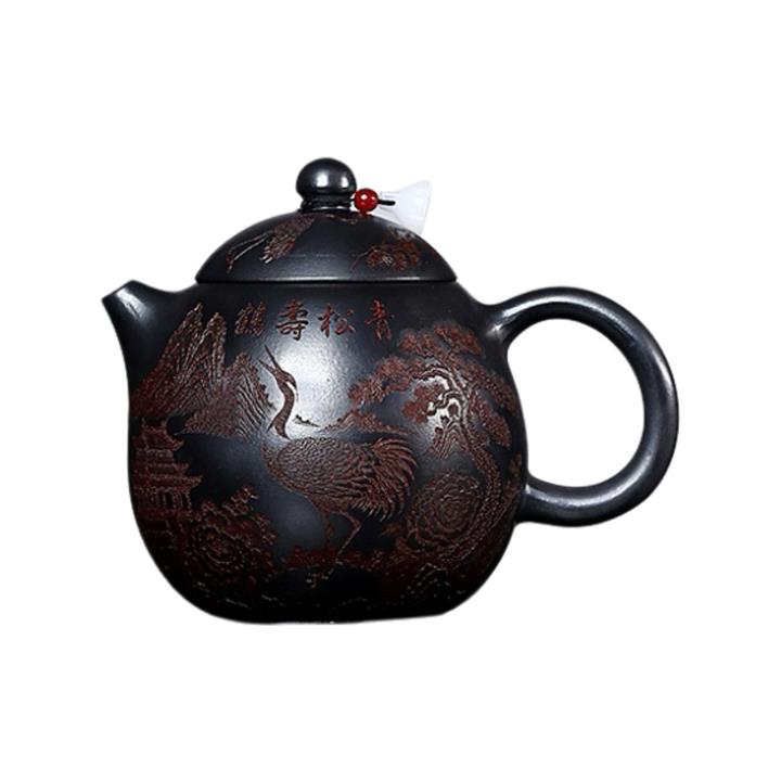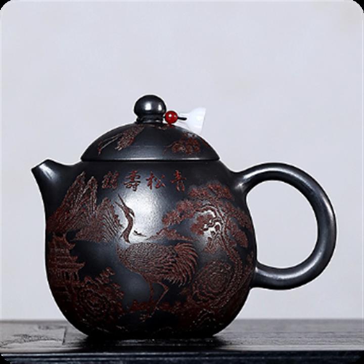 360cc原礦玄鐵石黃松鶴龍蛋泡茶壺POT9136
