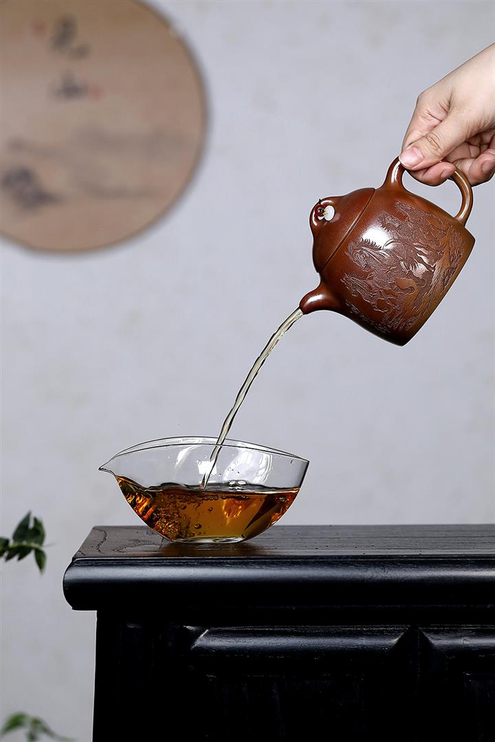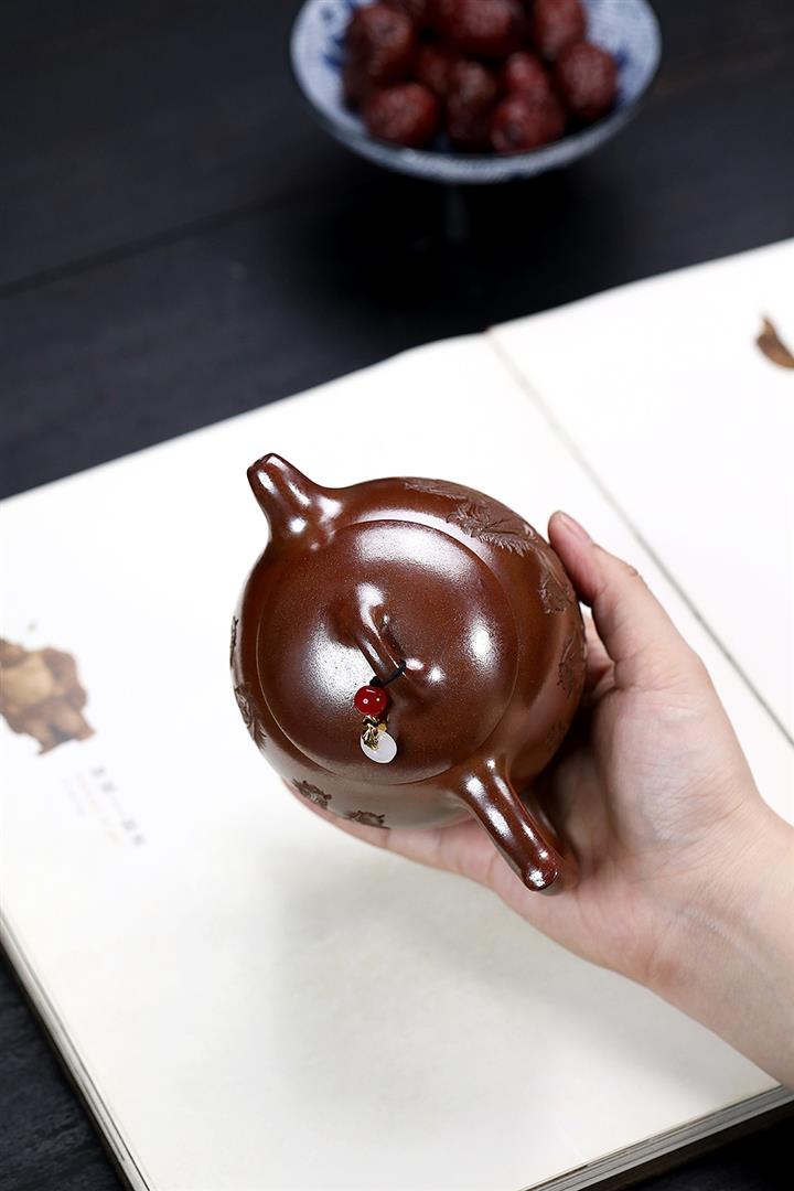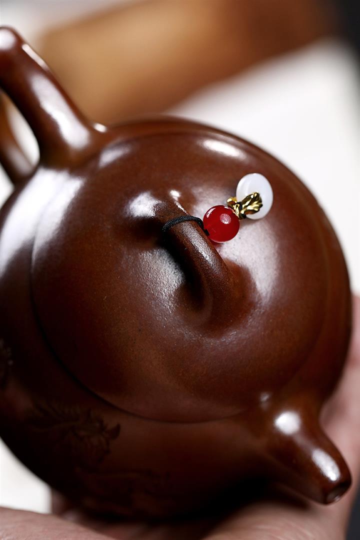 【泥料特點】砂土氣重,似淳實農民,日久使用,漸露鋒芒,養成變化,溫潤莊重。紫砂是壹種雙重氣孔結構的多孔性材質,氣孔微細,密度高。用紫砂壺沏茶,不失原味,且香不渙散,得茶之真香真味。紫砂使用越久,壺身色澤越發光亮照人,氣韻溫雅。紫砂壺長久使用器身會因撫摸擦拭,變得越發溫潤光澤。