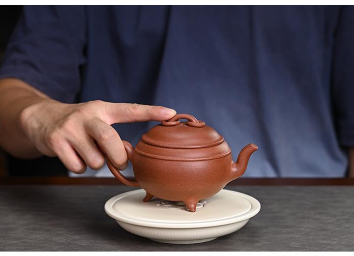 【泥料特點】砂土氣重,似淳實農民,日久使用,漸露鋒芒,養成變化,溫潤莊重。紫砂是壹種雙重氣孔結構的多孔性材質,氣孔微細,密度高。用紫砂壺沏茶,不失原味,且香不渙散,得茶之真香真味。紫砂使用越久,壺身色澤越發光亮照人,氣韻溫雅。紫砂壺長久使用器身會因撫摸擦拭,變得越發溫潤光澤。
