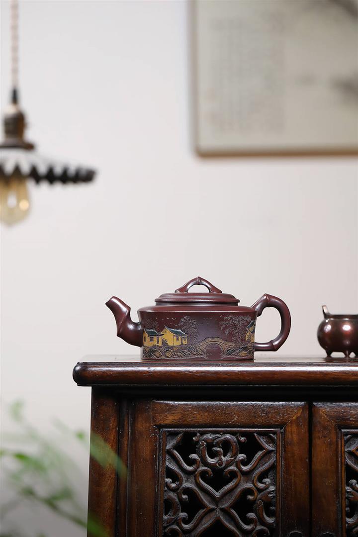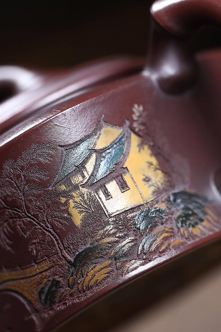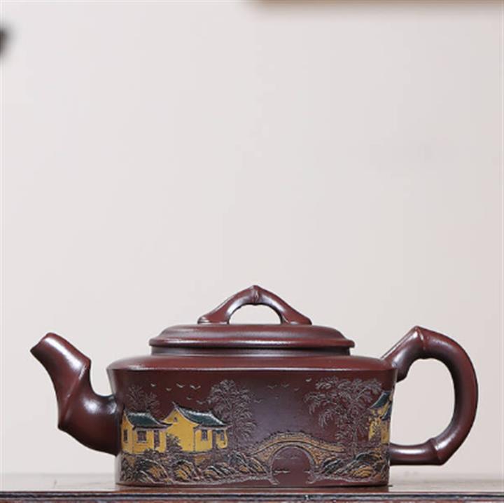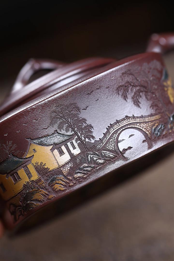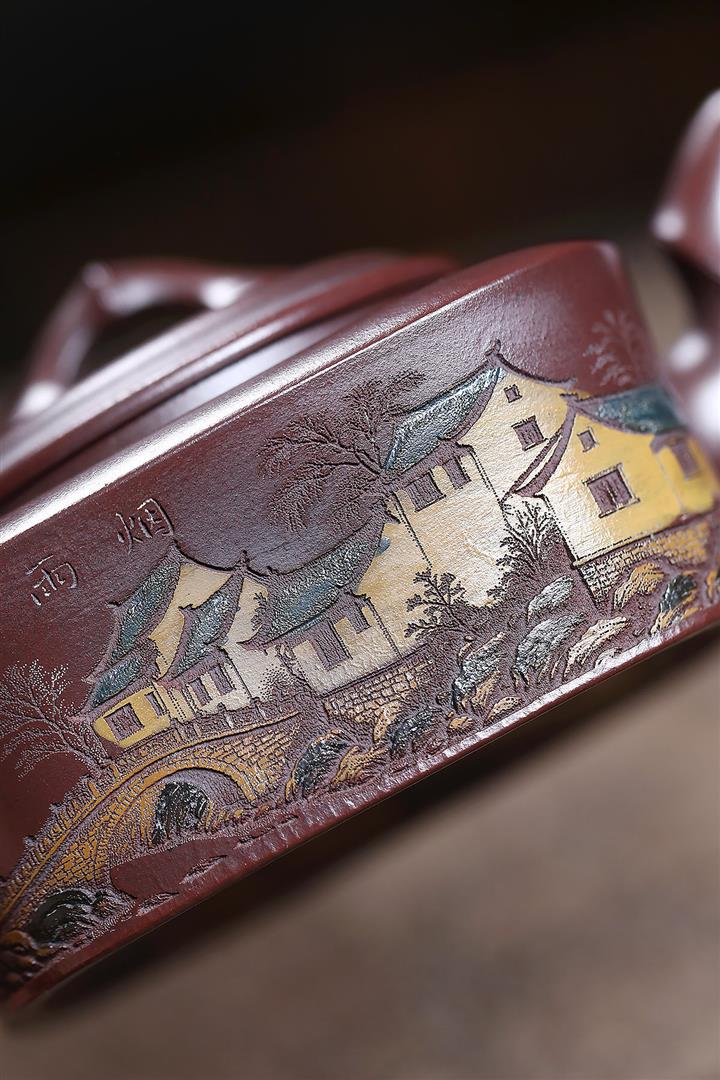 原礦紅皮龍滿刻山水漢瓦茶壺POT7226