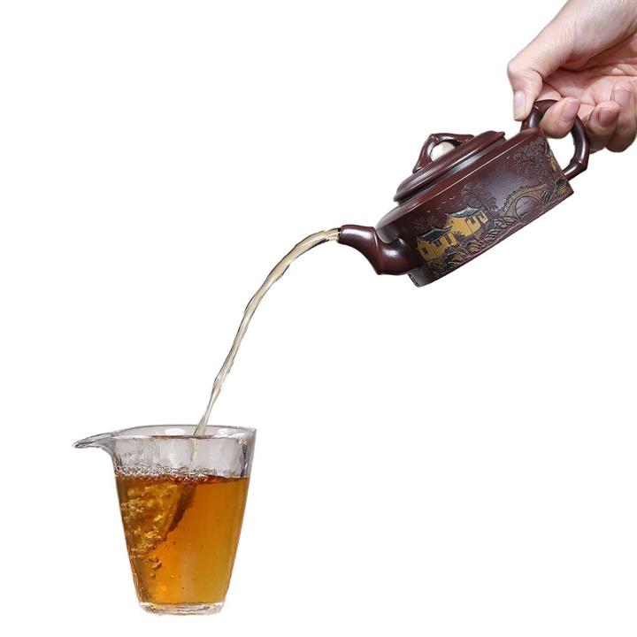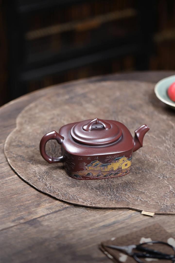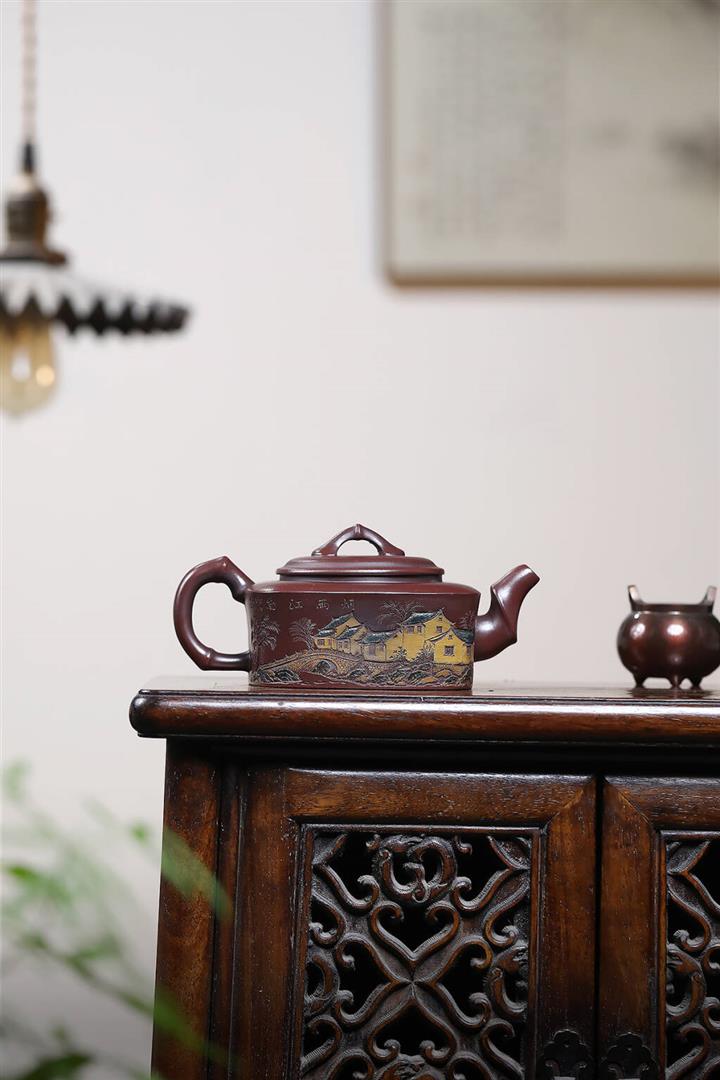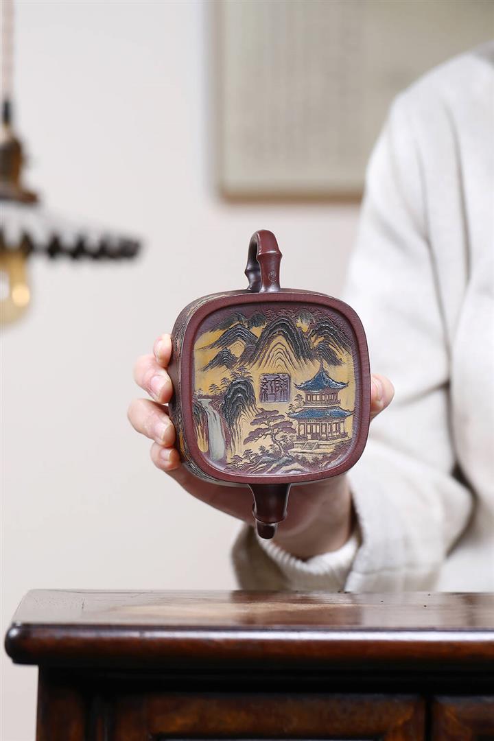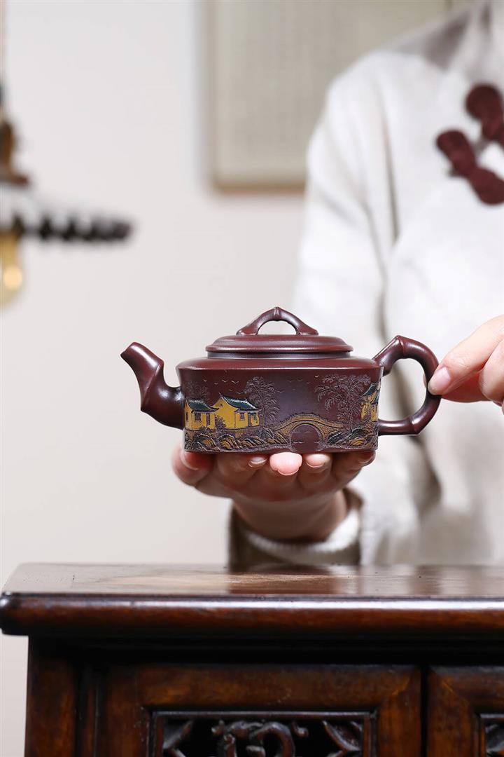 原礦紅皮龍滿刻山水漢瓦茶壺POT7226